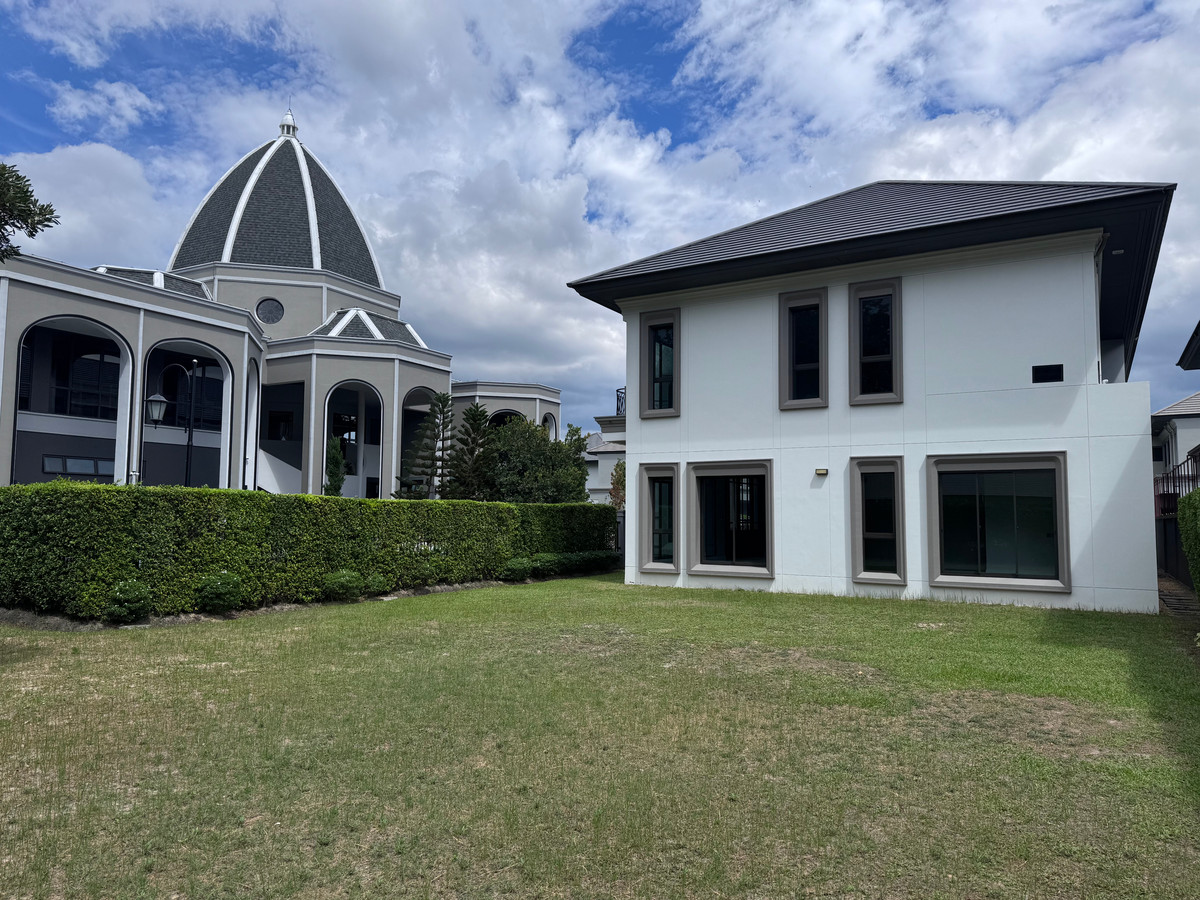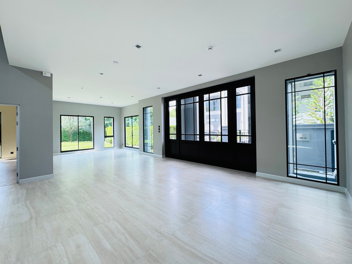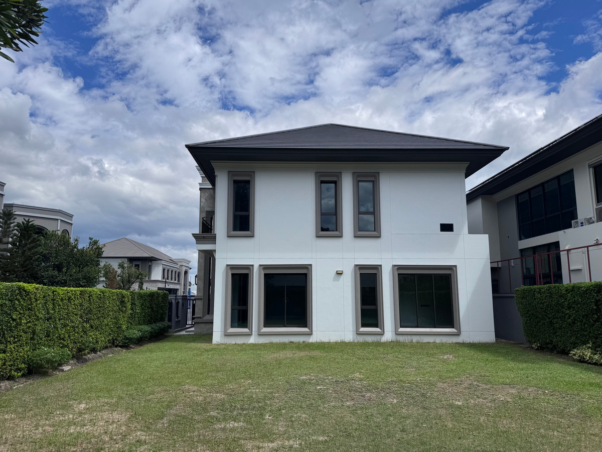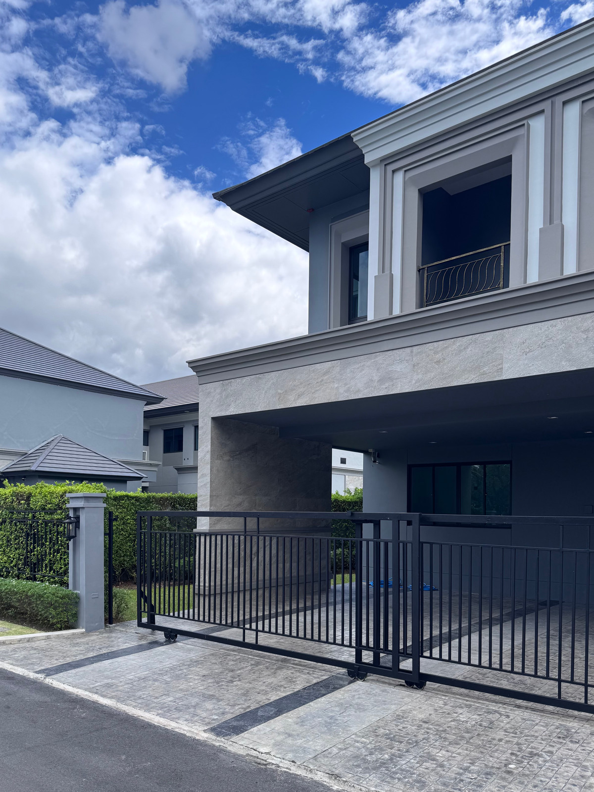 This brand-new luxury residence is ready for its first owner. Positioned on one of the most exclusive and private plots in the project, this corner unit is the largest land size available — 202.80 sq.wah (approx. 811 sq.m.) with a total usable area of 591 sq.m. The property is directly opposite the Clubhouse, offering both convenience and exclusivity. Highlight Features • Brand new house, never lived in • Rare corner plot with exceptional privacy • Expansive lawn area — large enough to build another house • Third-party professional home inspection completed (report available after transfer) • Half-rai plot in a luxury village — rare and highly sought-after Property Details • 5 Bedrooms • 6 Bathrooms • Spacious Double Living Room • Dining Room • Fully Functional Kitchen • Family Room / Common Area • Double Volume Ceiling • Laundry Plaza • 2 Maid Rooms • 5 Parking Spaces Selling Price: Unfurnished 75 Million Baht (Reduced from 82 Million Baht) A true luxury home that combines architectural elegance, space, and privacy — a rare opportunity in one of Bangkok’s most prestigious neighborhoods. CONTACT Khun Paul ติดต่อ: คุณพอล Tel/Line: Contact number Line OA: @paulestate WhatsApp : Contact number #GrandBangkokBoulevard #LuxuryHomeBangkok #PremiumProperty #RamintraKasetNawamin #LuxuryLiving #ExclusiveResidence #BrandNewHouse #LuxuryVillaThailand