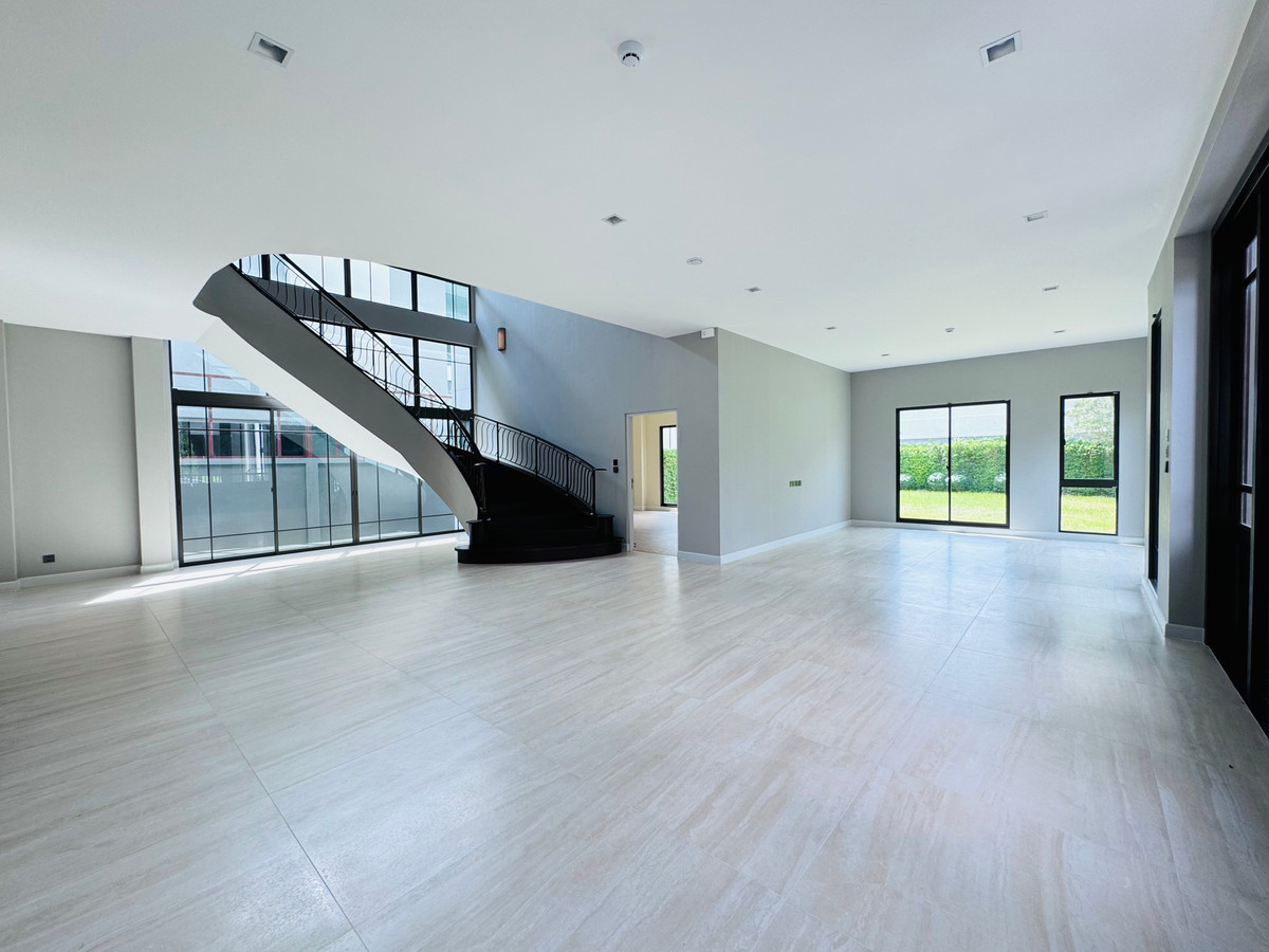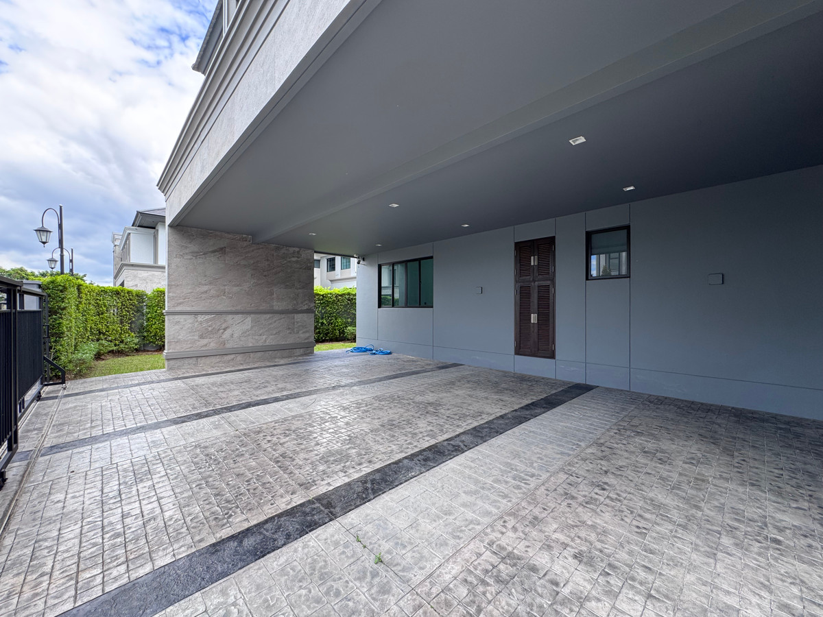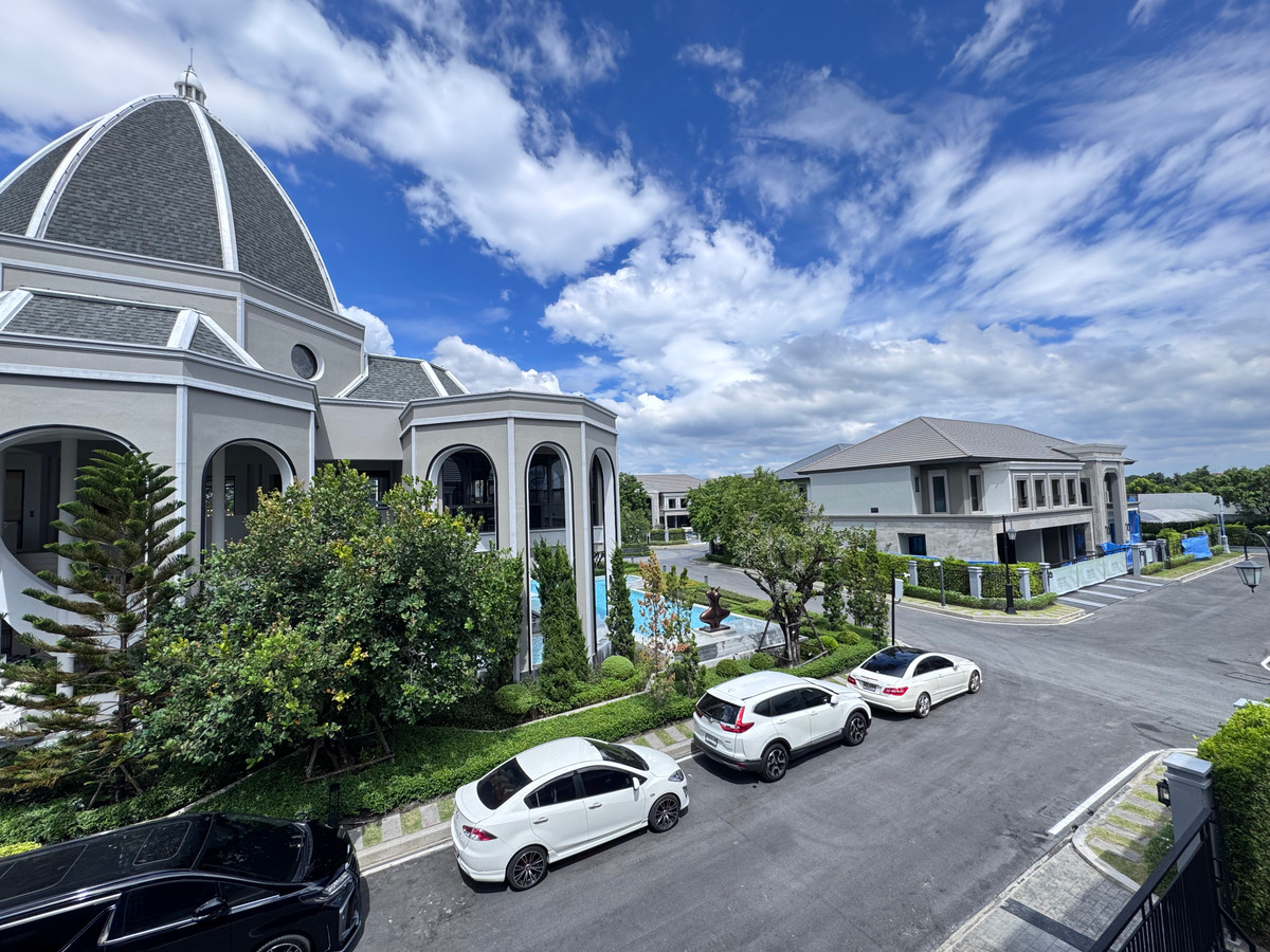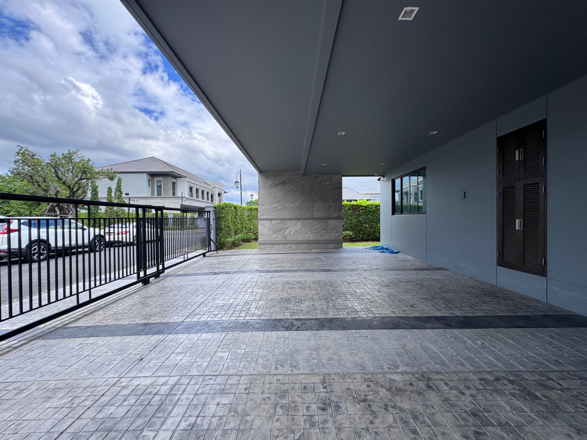 This brand-new luxury residence is ready for its first owner. Positioned on one of the most exclusive and private plots in the project, this corner unit is the largest land size available — 202.80 sq.wah (approx. 811 sq.m.) with a total usable area of 591 sq.m. The property is directly opposite the Clubhouse, offering both convenience and exclusivity. Highlight Features • Brand new house, never lived in • Rare corner plot with exceptional privacy • Expansive lawn area — large enough to build another house • Third-party professional home inspection completed (report available after transfer) • Half-rai plot in a luxury village — rare and highly sought-after Property Details • 5 Bedrooms • 6 Bathrooms • Spacious Double Living Room • Dining Room • Fully Functional Kitchen • Family Room / Common Area • Double Volume Ceiling • Laundry Plaza • 2 Maid Rooms • 5 Parking Spaces Selling Price: Unfurnished 75 Million Baht (Reduced from 82 Million Baht) A true luxury home that combines architectural elegance, space, and privacy — a rare opportunity in one of Bangkok’s most prestigious neighborhoods. CONTACT Khun Paul ติดต่อ: คุณพอล Tel/Line: Contact number Line OA: @paulestate WhatsApp : Contact number #GrandBangkokBoulevard #LuxuryHomeBangkok #PremiumProperty #RamintraKasetNawamin #LuxuryLiving #ExclusiveResidence #BrandNewHouse #LuxuryVillaThailand