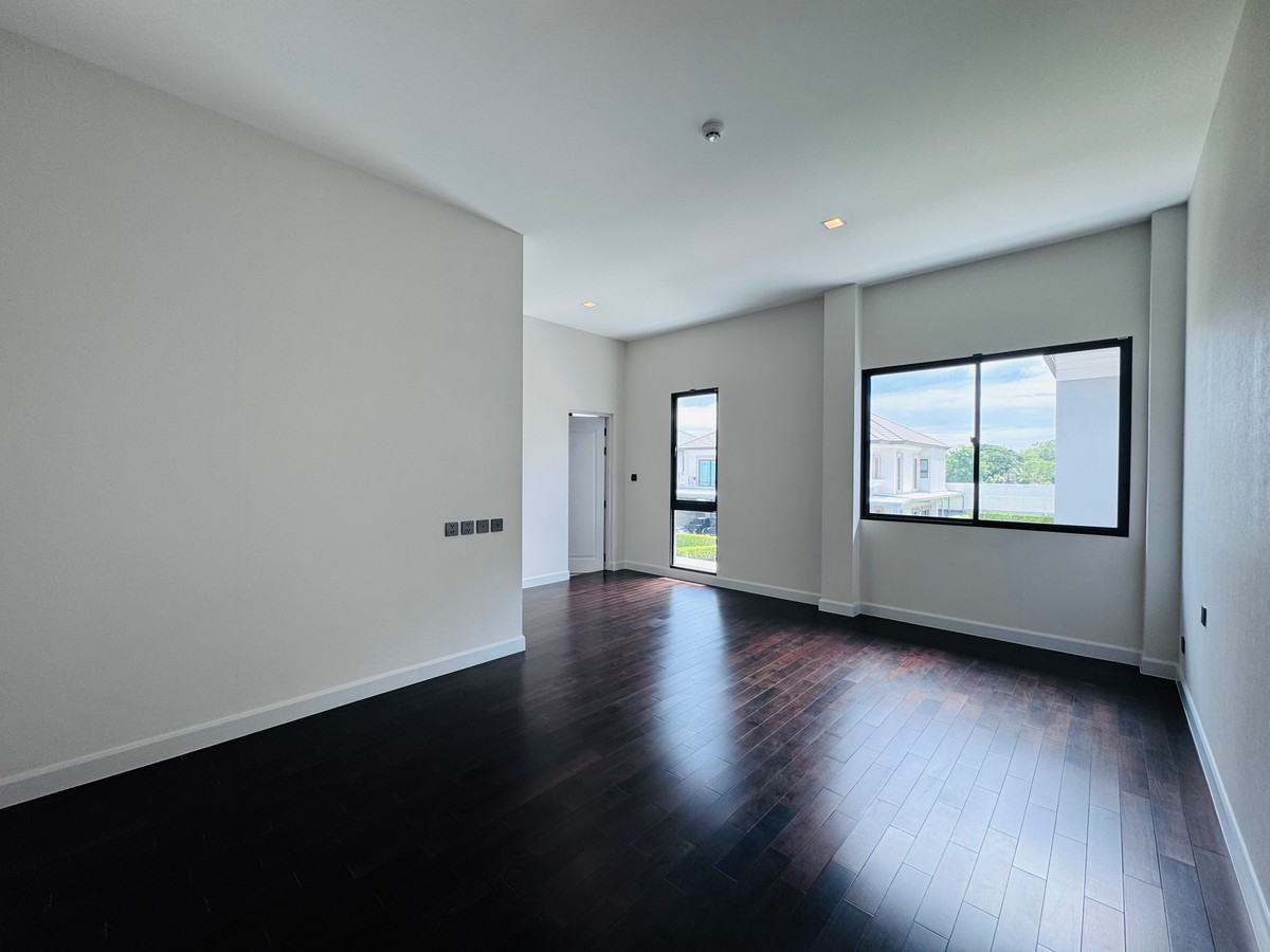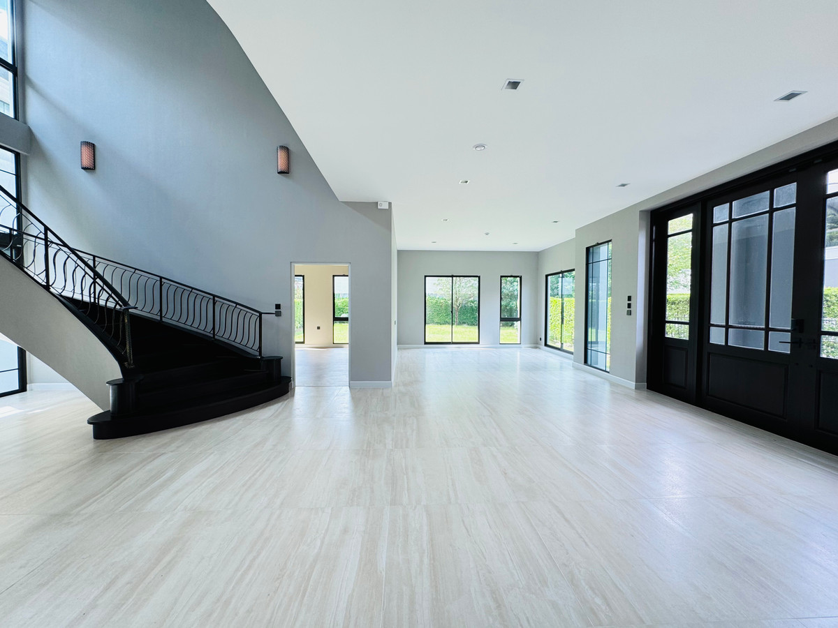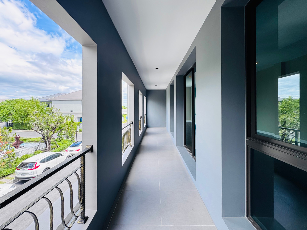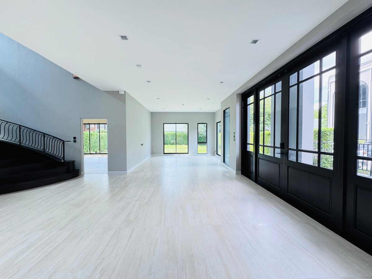 This brand-new luxury residence is ready for its first owner. Positioned on one of the most exclusive and private plots in the project, this corner unit is the largest land size available — 202.80 sq.wah (approx. 811 sq.m.) with a total usable area of 591 sq.m. The property is directly opposite the Clubhouse, offering both convenience and exclusivity. Highlight Features • Brand new house, never lived in • Rare corner plot with exceptional privacy • Expansive lawn area — large enough to build another house • Third-party professional home inspection completed (report available after transfer) • Half-rai plot in a luxury village — rare and highly sought-after Property Details • 5 Bedrooms • 6 Bathrooms • Spacious Double Living Room • Dining Room • Fully Functional Kitchen • Family Room / Common Area • Double Volume Ceiling • Laundry Plaza • 2 Maid Rooms • 5 Parking Spaces Selling Price: Unfurnished 75 Million Baht (Reduced from 82 Million Baht) A true luxury home that combines architectural elegance, space, and privacy — a rare opportunity in one of Bangkok’s most prestigious neighborhoods. CONTACT Khun Paul ติดต่อ: คุณพอล Tel/Line: Contact number Line OA: @paulestate WhatsApp : Contact number #GrandBangkokBoulevard #LuxuryHomeBangkok #PremiumProperty #RamintraKasetNawamin #LuxuryLiving #ExclusiveResidence #BrandNewHouse #LuxuryVillaThailand