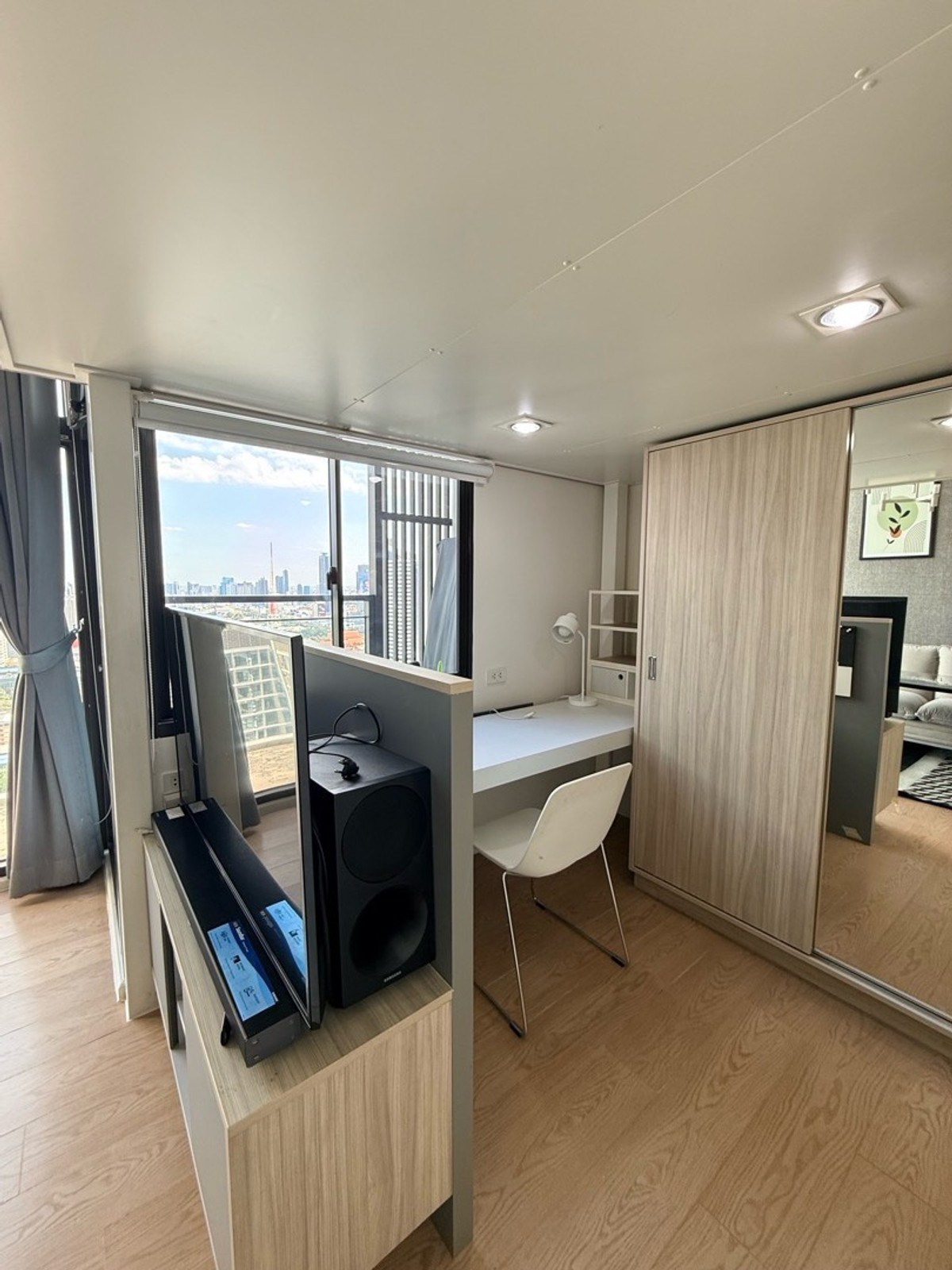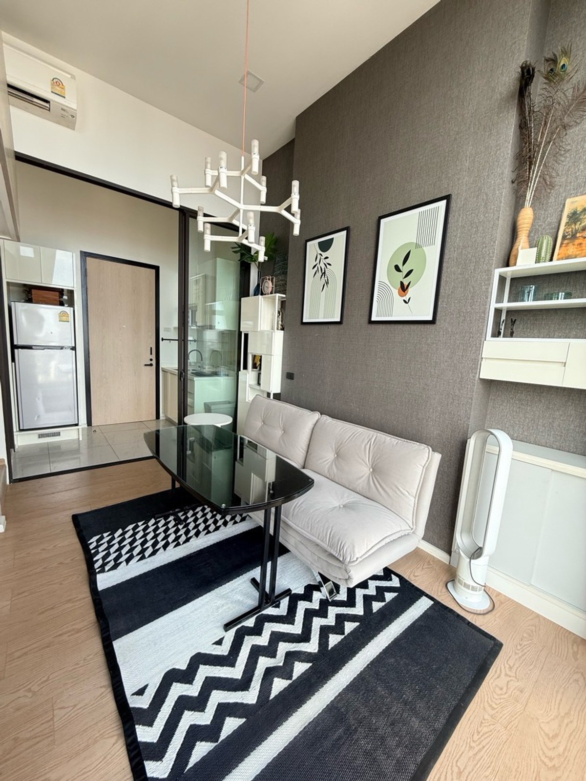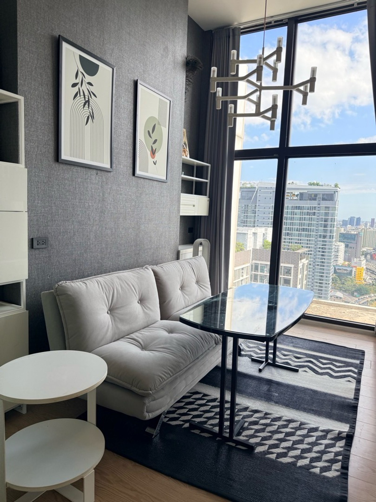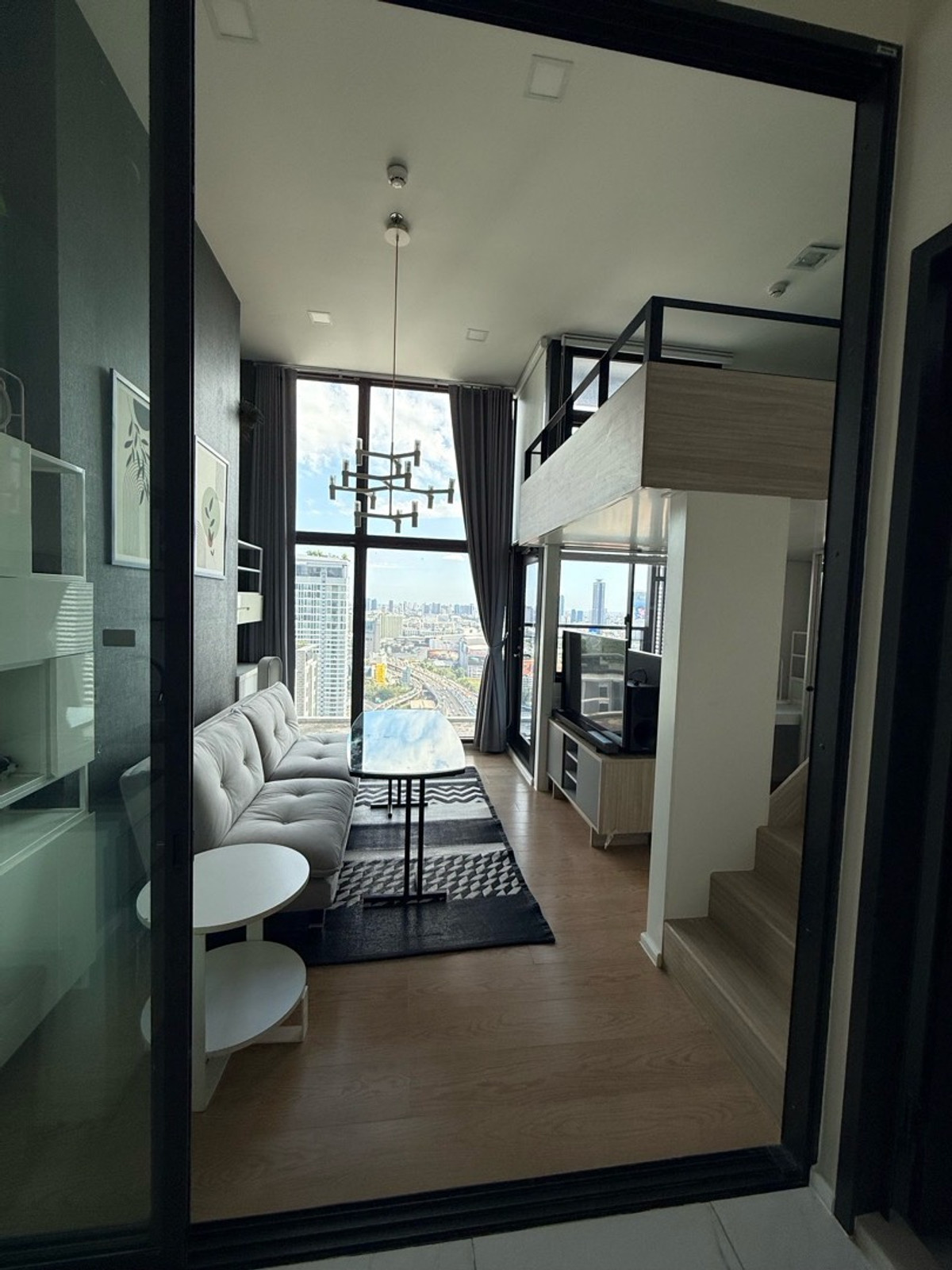 Rental price: 24,500 baht/month Conditions: Minimum 1 year contract (2 months insurance, 1 month in advance) ✨ Superior room highlights * Duplex room, highest floor (28), size 29.09 + 6 sq m (mezzanine) 3.6 meter high ceilings, panoramic city views. There is nothing obscuring the east side for maximum privacy. * Complete set of premium electrical appliances: The room is decorated and ready to move in. Complete with furniture and electrical appliances * Washing machine and "dryer" Separate (no problem of drying clothes in the room) * 55-inch TV with soundbar set * Dyson fan and automatic toilet lid (Washlet) * Complete set of kitchen utensils (microwave, kettle, rice cooker, plate-bowl set) 📍 Location and transportation * New CBD location: near Asoke/Rama 9 intersection * Convenient transportation: near MRT Phetchaburi and Airport Rail Link Makkasan, connecting to and from the city easily. * Complete facilities: swimming pool, fitness, sauna, Co-Working Lounge, sky garden (Barbecue Terrace, Sunset Lounge) and 24-hour security system.