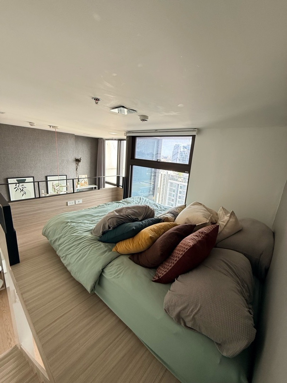 Rental price: 24,500 baht/month Conditions: Minimum 1 year contract (2 months insurance, 1 month in advance) ✨ Superior room highlights * Duplex room, highest floor (28), size 29.09 + 6 sq m (mezzanin
