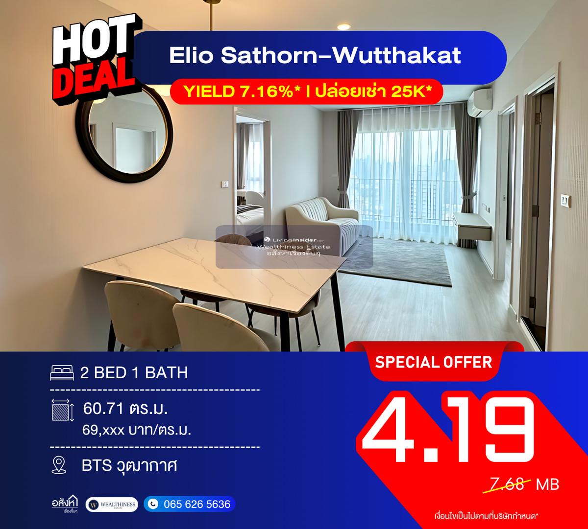 Elio Sathorn–Wutthakat 📞 Contact number Hot Deal! 2-Bedroom Large Unit, High Floor with Stunning View Final Special Price Only 4.19 MB 🏙️ Hot Deal! 2 Bedrooms, High Floor, Beautiful View Elio Sathorn–Wutthakat Spacious unit, best price in the project. 2 Bedrooms, 2 Bathrooms, 60.71 sq.m. High floor, open view, fully furnished. 📌 Special price only 4.19 million baht. Perfect for both living or immediate rental. 📍 Close to BTS Wutthakat Easy access — just minutes to Sathorn. 💰 Rental potential 25,000 THB/month* Yield up to 7.15% per year*. New project with full facilities: 🏊‍♂️ Swimming pool / 🏋️‍♀️ Fitness / Co-working space / 🌳 Garden area 📍 Prime location near Sathorn–Wongwian Yai Walking distance to BTS Wutthakat, just minutes to Sathorn. Convenient access by both BTS and car. 📌 Nearby landmarks: BTS Wutthakat The Mall Tha Phra (3.5 km) ICONSIAM (6.8 km) ASIATIQUE (7.2 km) Phyathai 3 Hospital / Samitivej Thonburi Hospital ⚡ This price won’t come again! —————————————————— Private Property Tour Personal Property Consultant For more information : Wealthiness Estate Tel. : Contact number Admin Line id : admin_we หรือ https://line.me/ti/p/9YmwhB51aQ Whatsapp : Contact number Website : https://www.wealthinessestate.com Facebook : https://www.facebook.com/WealthinessEstate Email : Contact email