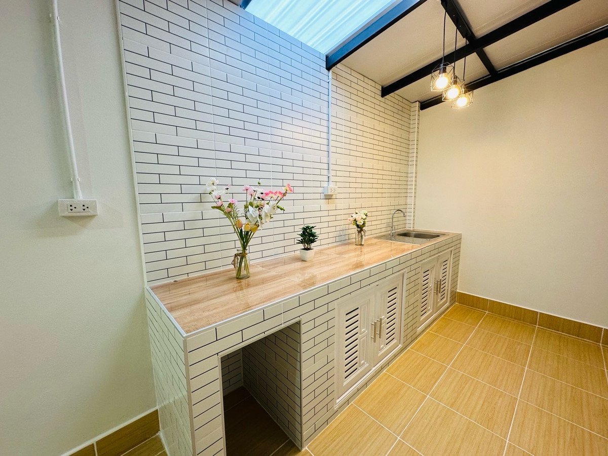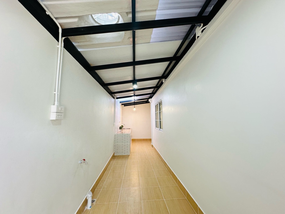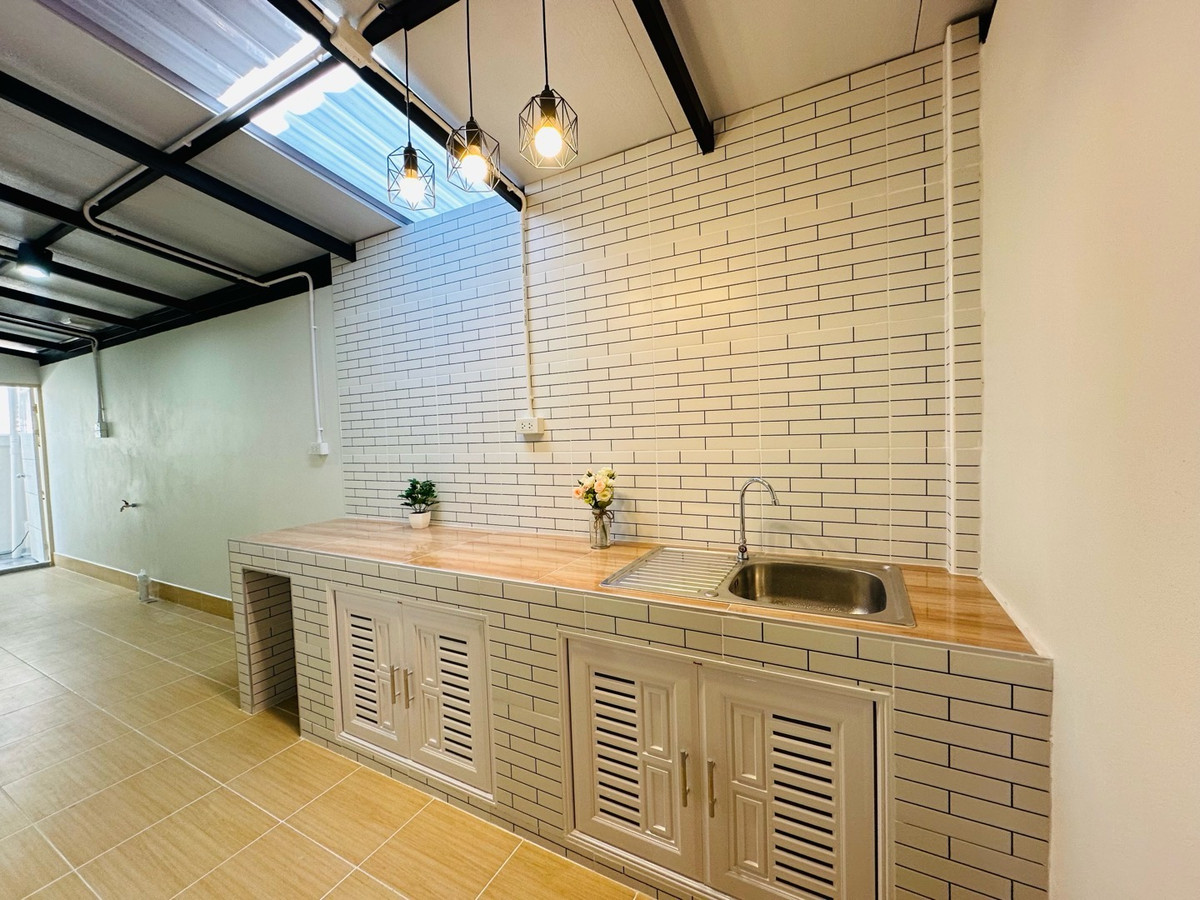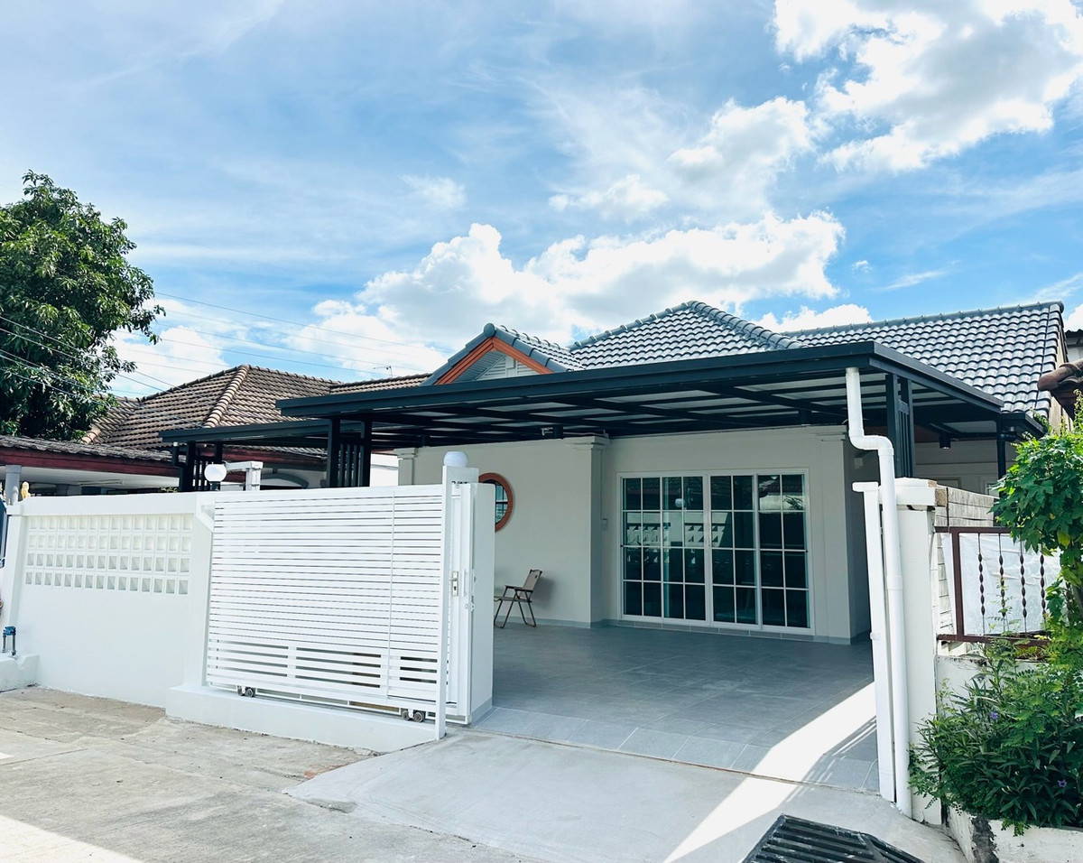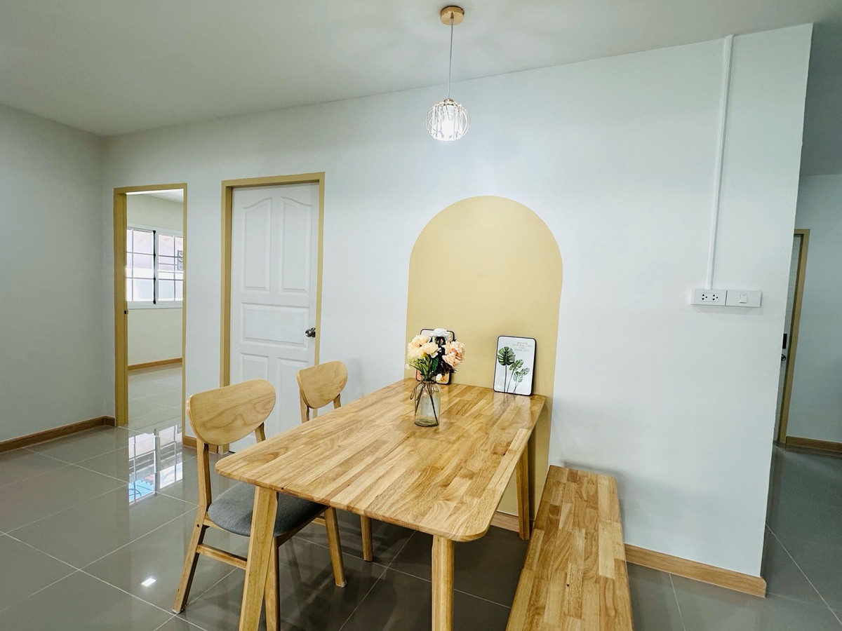 Single-storey detached house, newly renovated #Sindhorn Village Rangsit-Bang Phun * Single-storey detached house, size 43 sq m., total usable area 230 sq m. * The front of the house is very wide, 10 meters. * The house has 3 bedrooms, 1 bathroom, 1 parking space. * Living room, built-in kitchen in the house and Thai kitchen behind the house * The front of the house faces north, a good direction, not hot, receive wealth and be rich. * Common fee is only 300 baht per month. * Newly renovated house, ready to move in, tiled around the house * Decorated in a minimalist, modern, warm style * Excellent project with security guards and strong legal supervision. There is a large lake, a health park, and a playground. Suitable for families who want a residence with an exercise area * The project has convenience stores 7-11, Lotus, restaurants, coffee shops. 💕 Free!! : Sofa bed, dining table set, center table, TV shelf, wardrobe ,Air conditioner, water pump, water tank, built-in kitchen counter Nearby places: Future Park Rangsit Department Store, Social Security Office, St. Carlos Hospital, Bangkadi Industrial Estate, Rangsit University. Transportation: Rangsit-Pathum Thani Road, Udon Ratthaya Expressway, Toll Expressway. Location: Bang Phun Subdistrict, Rangsit-Pathum Thani Road. Mueang Pathum Thani District, Pathum Thani Province Location Sinthorn Rangsit Village: https://maps.app.goo.gl/muvC3NCcogaFMGJe8?g_st=com.google.maps.preview.copy