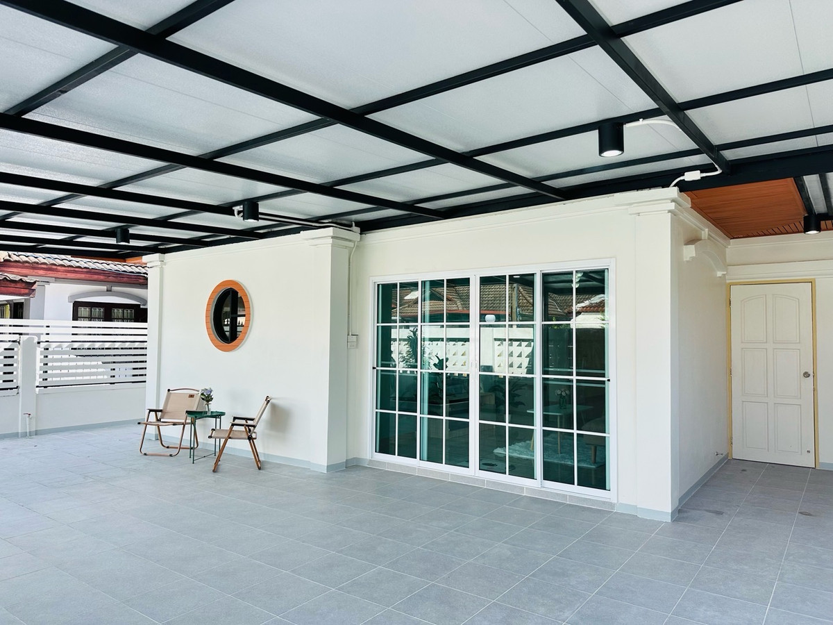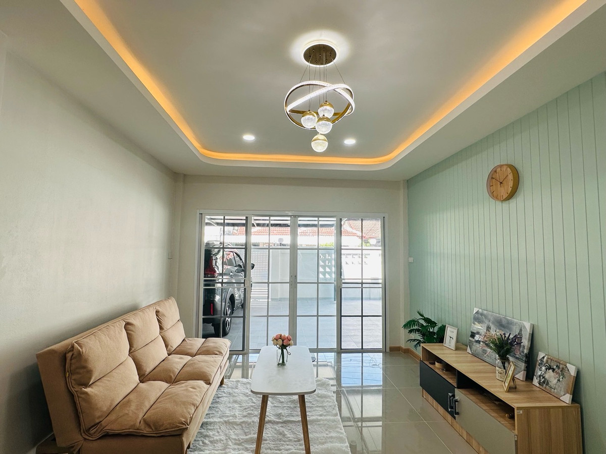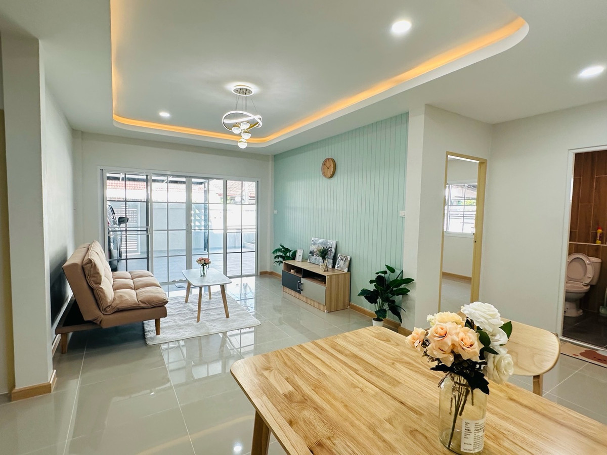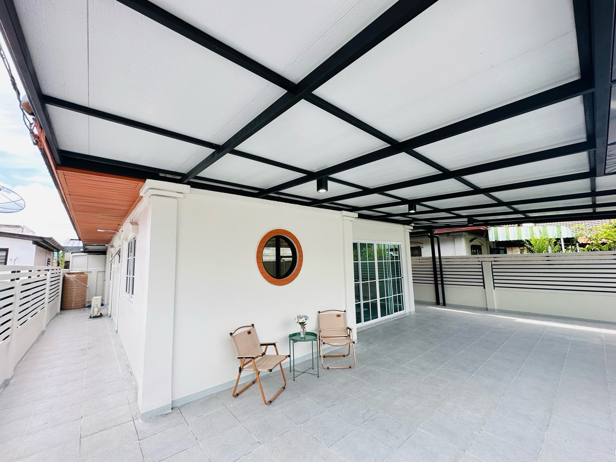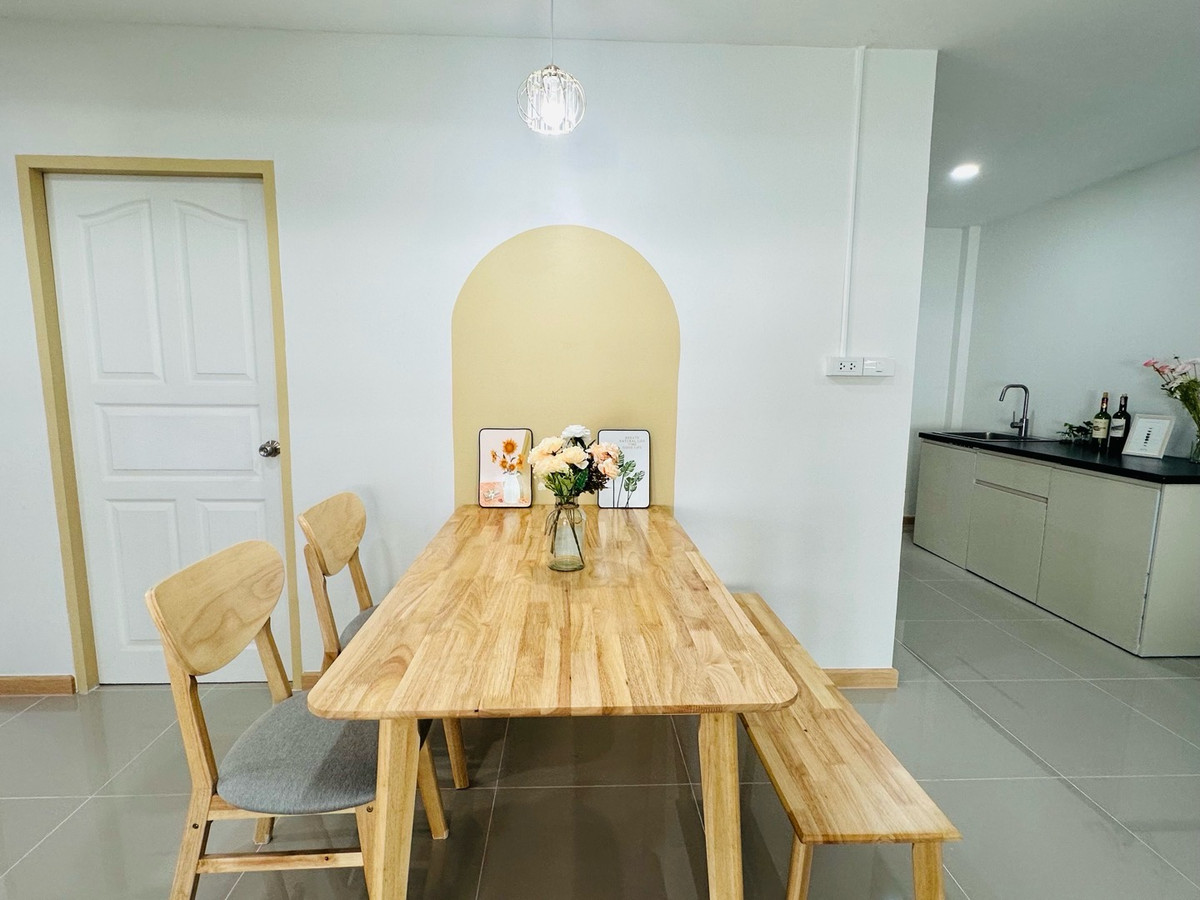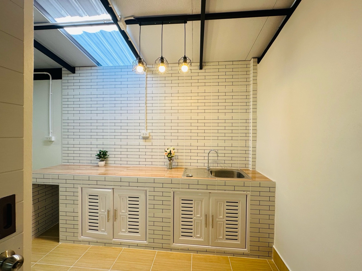 Single-storey detached house, newly renovated #Sindhorn Village Rangsit-Bang Phun * Single-storey detached house, size 43 sq m., total usable area 230 sq m. * The front of the house is very wide, 10 meters. * The house has 3 bedrooms, 1 bathroom, 1 parking space. * Living room, built-in kitchen in the house and Thai kitchen behind the house * The front of the house faces north, a good direction, not hot, receive wealth and be rich. * Common fee is only 300 baht per month. * Newly renovated house, ready to move in, tiled around the house * Decorated in a minimalist, modern, warm style * Excellent project with security guards and strong legal supervision. There is a large lake, a health park, and a playground. Suitable for families who want a residence with an exercise area * The project has convenience stores 7-11, Lotus, restaurants, coffee shops. 💕 Free!! : Sofa bed, dining table set, center table, TV shelf, wardrobe ,Air conditioner, water pump, water tank, built-in kitchen counter Nearby places: Future Park Rangsit Department Store, Social Security Office, St. Carlos Hospital, Bangkadi Industrial Estate, Rangsit University. Transportation: Rangsit-Pathum Thani Road, Udon Ratthaya Expressway, Toll Expressway. Location: Bang Phun Subdistrict, Rangsit-Pathum Thani Road. Mueang Pathum Thani District, Pathum Thani Province Location Sinthorn Rangsit Village: https://maps.app.goo.gl/muvC3NCcogaFMGJe8?g_st=com.google.maps.preview.copy