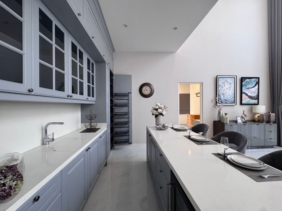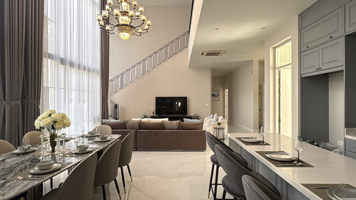 Narasiri Krungthep Kreetha: NoHo 5 554 sqm. 4bed 5bath + 1 maidroom 7.4 meter double volume living area 4 parking indoor (+ 4 parking outdoor) Ready to move in Rent: 500,000/mth. - Minimum 1 year cont