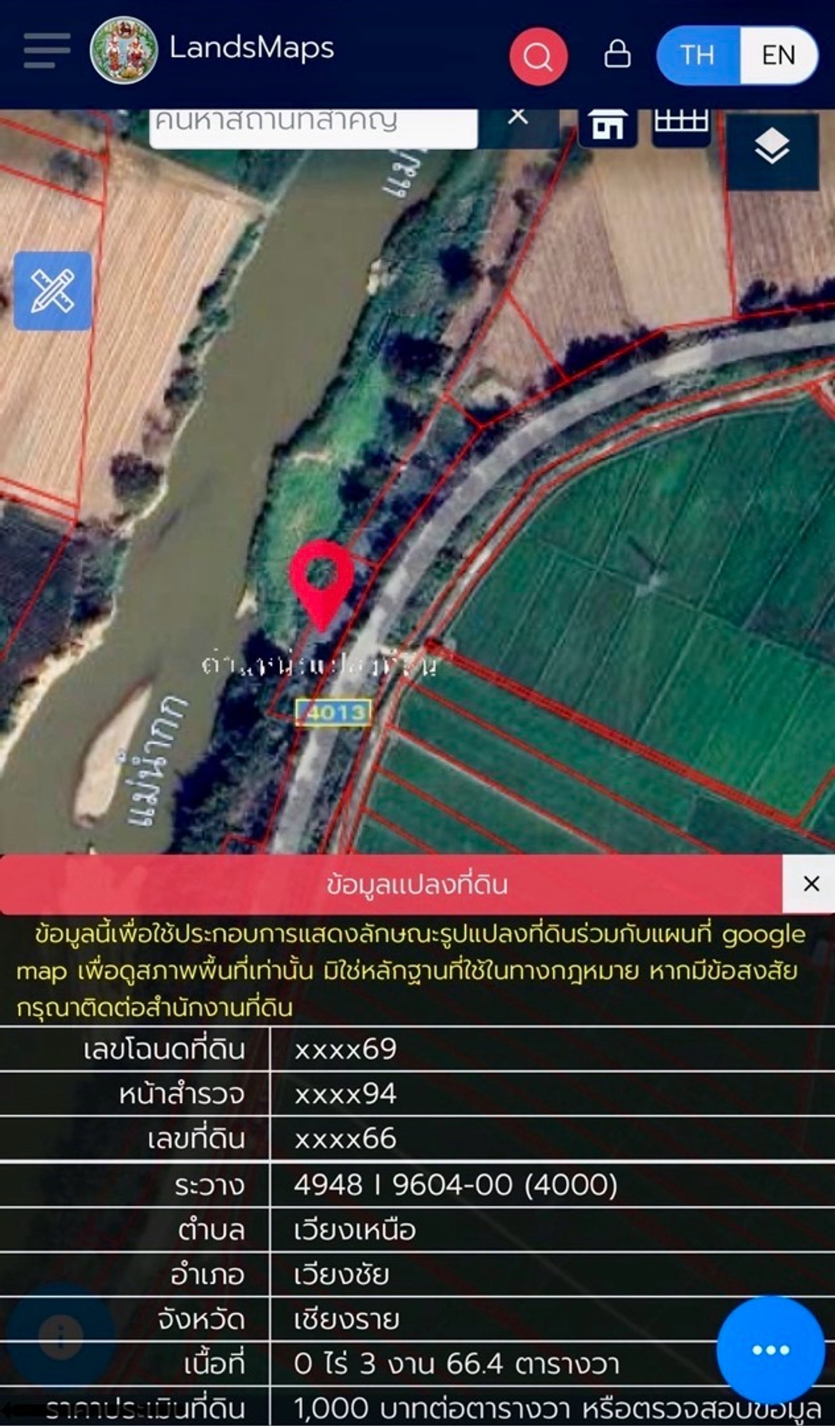 The land has title deed 00-03-66.40 rai + growing area almost 4 rai.