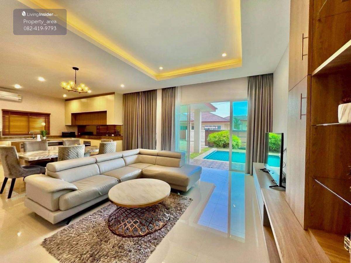 Urgent rent, one-story house, pool villa, Gerden Ville project, Huai Yai, size 115 sq m, area 460 sq m, 3 bedrooms, 3 bathrooms, special price 60,000 baht Project name > Gerden Ville Huai Yai Total