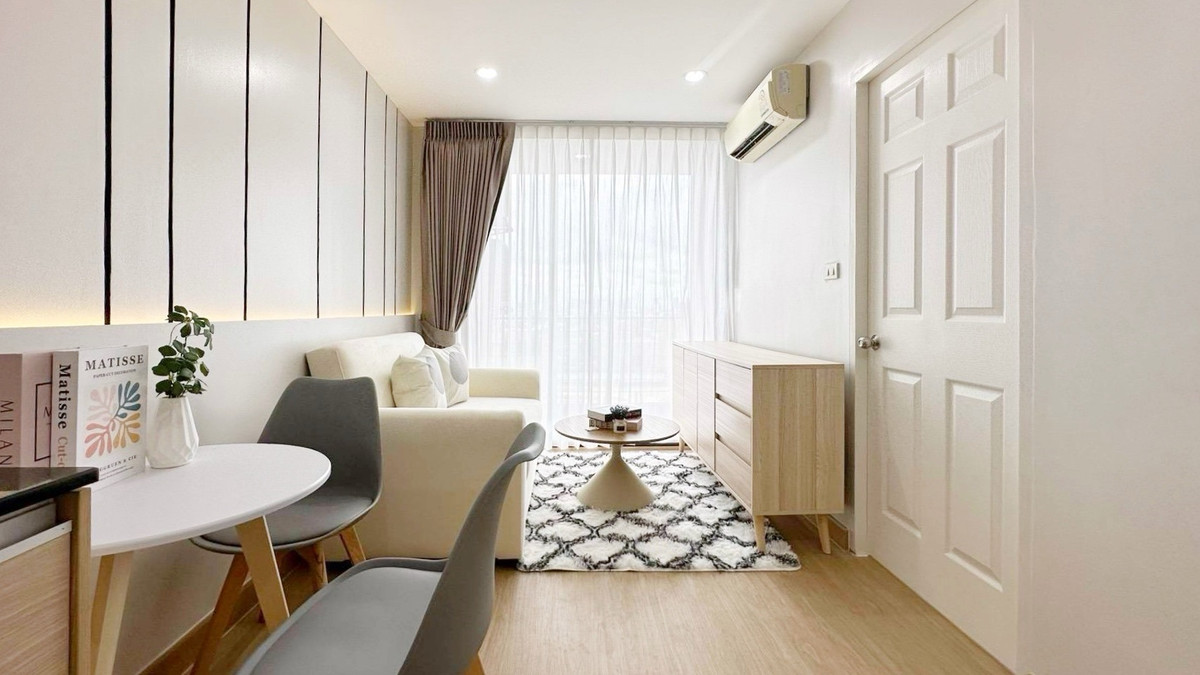 🌟 *I-Zen Ekkamai-Ramintra (Nakniwat 45)** 💎Excellent location. Near Ramintra Expressway, Ratchada, Lat Phrao, near Central Eastville and CDC with only 6 minutes to MRT Lat Phrao 71 and Chokchai 4 🏡 **Apartment ready to move in** 1 bedroom 1 living room 1 Kitchen with balcony, on the 2nd floor, size 33.05 sq m. beautifully decorated with furniture and Digital doorlock ✨ Low additional costs - Common fee of 30 baht per square meter, Water fee of 18 baht per unit, electricity according to Luang 🌈 Special privileges: **Free in every loan process!** 🏊♂️ **Complete common areas**: swimming pool, fitness, parking, key card system for entering and exiting the building, security guard 📍 **Location**: I-Zen Ekkamai-Ramindra (Nakniwat 45) [see map](https://maps.app.goo.gl/Zc67A5TyihpgRyzNA?g_st=il) 👤 For friends who are looking for a comfortable place to live near work. Experience a superior lifestyle with I-Zen Ekkamai-Ramindra. Answer all your needs Contact for more information ☎️ Contact number . ✅️ Line : nice265
