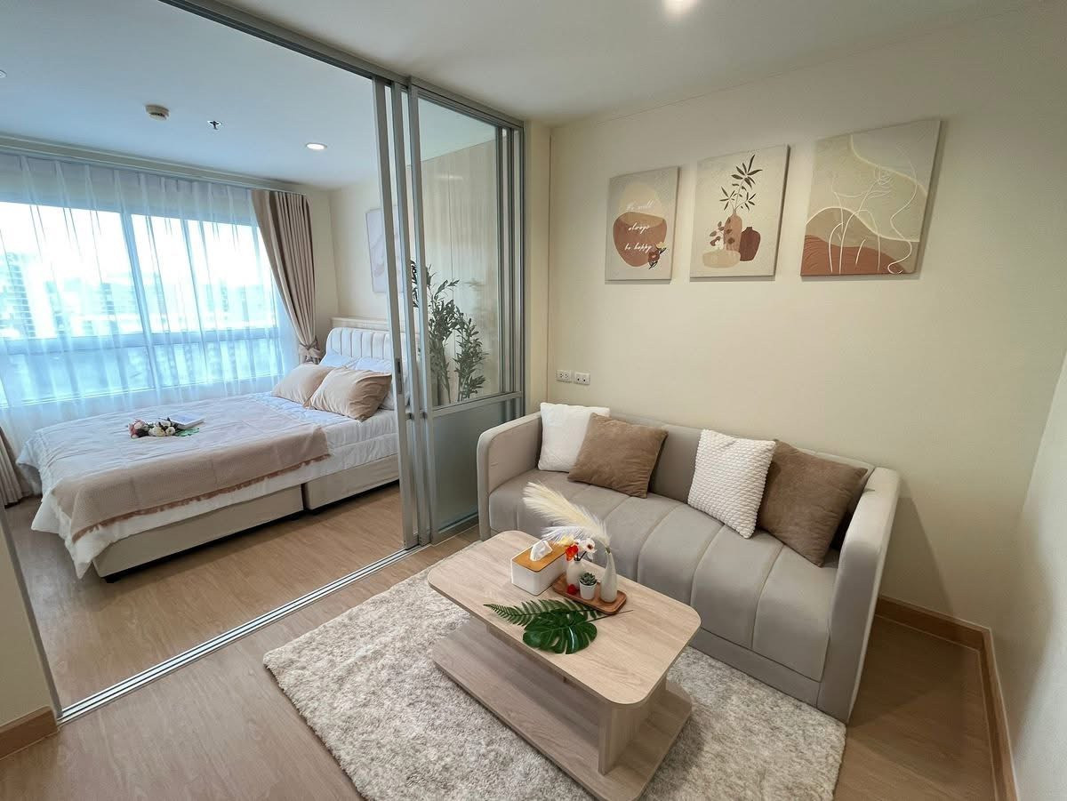 Room details - 1 bedroom, 1 bathroom - Area 26 sq m - Building B, 12th floor, east side. The room is not hot. Cool breeze - Fully furnished, sofa set, center table, bed and specially made curtains - Plus all electrical appliances as shown in the picture - Flooring and new minimalist style paint throughout the room - The room is spacious, airy, comfortable, with full access to natural light - Nothing more beautiful than this. If interested, you can make an appointment to view before making a decision 💰 Special price: 2.24 million baht 📞 If interested, contact Contact number Line:@firstclassestate https://lin.ee/7cRLIA3
