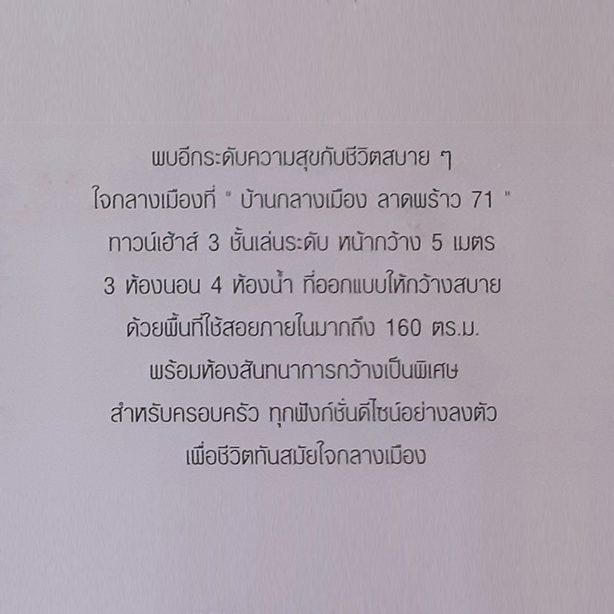 3-storey townhome for sale, corner house, Baan Klang Muang, Lat Phrao 71, Soi Nakniwat 4 , near the Yellow Line , size 21.3 sq m., width 5 meters , 3 bedrooms, 4 bathrooms , 2 parking spaces , plus 3 air conditioners in every bedroom Transportation bus line 156 Yellow Line (approximately 800 m.) MRT Lat Phrao Subway (approximately 3 km.) Nearby places Lat Phrao District Office Satri Witthaya School 2 Bodindecha School Wat Lat Phrao Wat Sirikamlawat, Phra Mae Kuan Im Chokchai Pavilion 4 Department store Central Eastville Lotus HomePro along Ramintra Expressway Crystal Design Center Department Store Big C Lat Phrao Hospital Lat Phrao Hospital Paolo Memorial Chokchai Hospital 4 Google Maps https://maps.app.goo.gl/LENKywn7oBhJ9cM86 If interested, please contact Khun Suthee Mobile: Contact number (9:00-17:00) LineID: @964mveny Email: Contact email FB: https://facebook.com/banklangmuang71