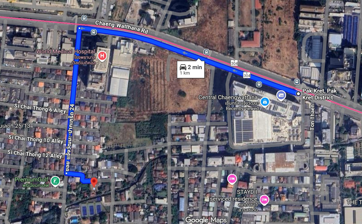 Land for rent in Soi Chaengwattana - Pak Kret 24 (Si Chai Thong 13), land area 250 square wah, near the Pink Line MRT. Just 400 meters from the mouth of Chaengwattana-Pak Kret Road Rent 40,000 baht/month ***Lease contract not more than 3 years (2 months deposit, 1 month rent in advance) ***In the case of long-term rental of more than 3 years or more, as agreed upon by both parties Land details - Area 250 sq m. (Land title deed includes 2 plots) - Width approx. 26 meters - Depth approximately 36 meters - Brown layout Features - Land area 250 square meters, only 400 meters from the entrance of Chaeng Watthana - Pak Kret Road 24. The road in front of the plot is 6 meters wide. The land area has been filled in and level with the road in front. The shape of the land is rectangular - Easy to design and build buildings on the land beautifully and cost-effectively. The environment nearby the land is a residential area with good social quality. There are complete facilities ready for living. The atmosphere is shady, quiet and safe, suitable for building an office, restaurant, warehouse, apartment/room for rent, parking - The land location is located in the center of the Chaengwattana area. Convenient travel by Soi Chaeng Watthana - Pak Kret 24, connected to 2 large main roads, Chaeng Watthana Road and Pak Kret Bypass Road. And the land is also located far from the Pink Line MRT. Chaengwattana Station - Pak Kret 28 only 1.8 kilometers (travel time 5 minutes) #Important facilities and nearby include Central Chaengwattana, Impact Muang Thong, Chaengwattana Government Center, HomePro, Makro, Lotus, Big C, World Medical Center Hospital, Crown Wattana Hospital, Jasmine Building, Thai Watsadu, Dhurakij Pundit University, Sukhothai Thammathirat Open University, Panyapiwat College, Nichada Thani, ISB international school, Harrow international school, Sport City, Health land, and Novotel Impact Hotel etc. Interested in making an appointment to view, contact: Khun Taew Tel: Contact number Line ID: Contact number #Land for rent Chaengwattana #Rent land in Pak Kret #Rent warehouse