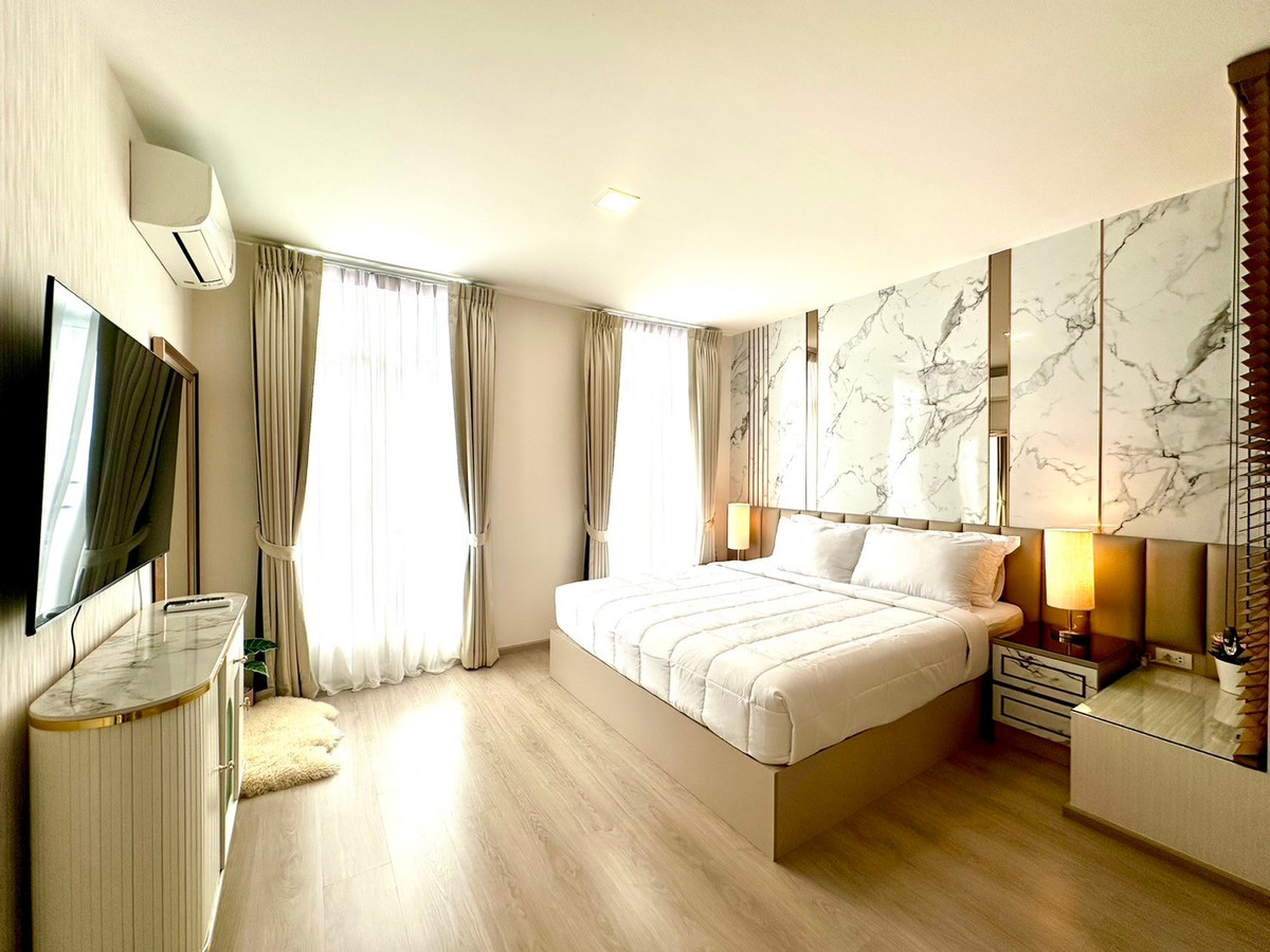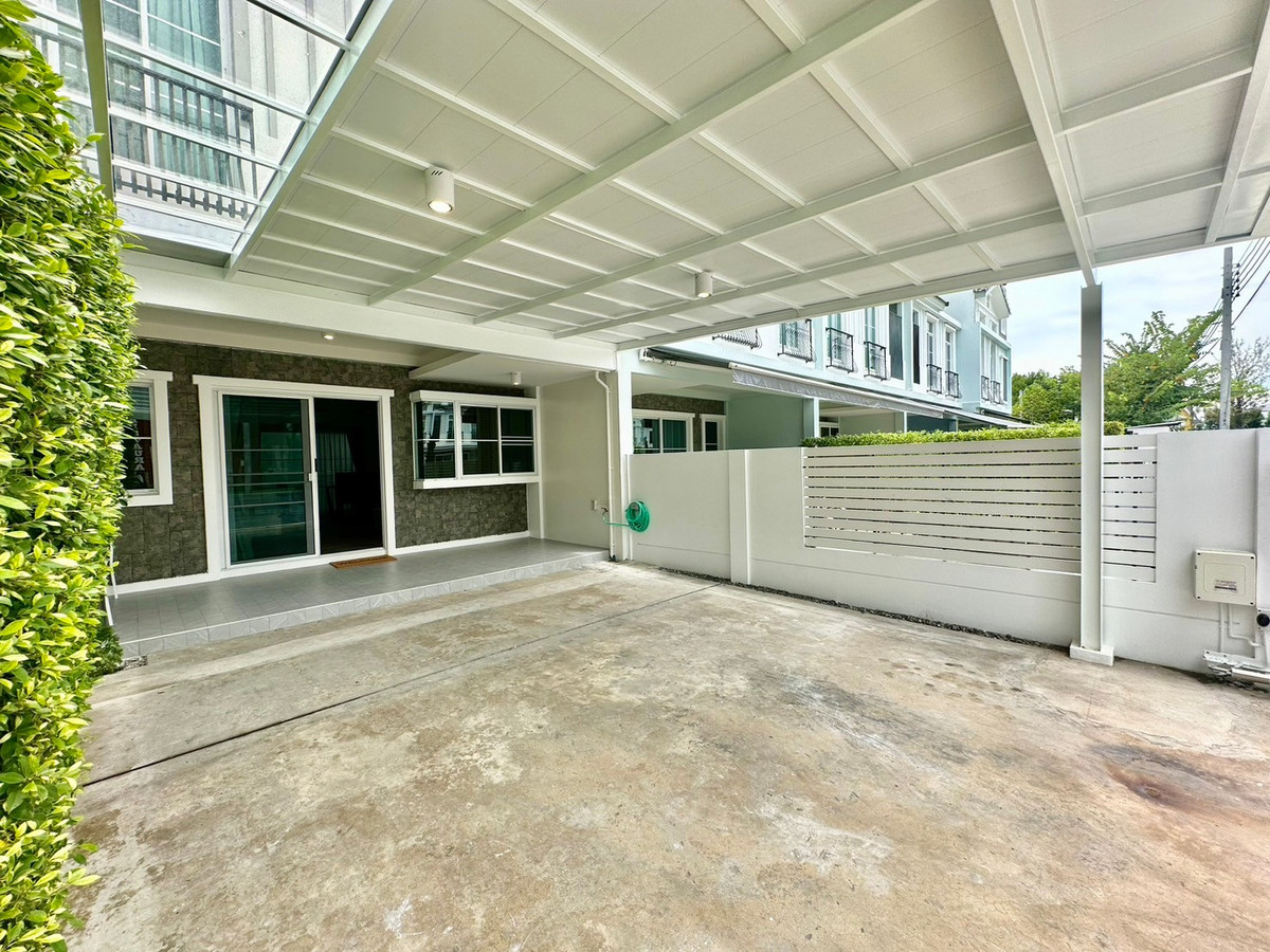 2-storey townhome, central plot, garden front, beginning of the project Land size 24.5 square wah Usable area 122+20 = 142 sq m. (including extension) ▪️3 bedrooms ▪️3 bathrooms ▪️1 living room ▪️1 western kitchen ▪️1 Thai kitchen, addition to the back of the house ▪️1 Multi-purpose yard In front of the house ▪️2 Parking Rent (Full Fur) 49,000 baht Ready to move in Location https://maps.app.goo.gl/hK4uws6f1HykJ35f6?g_st=al