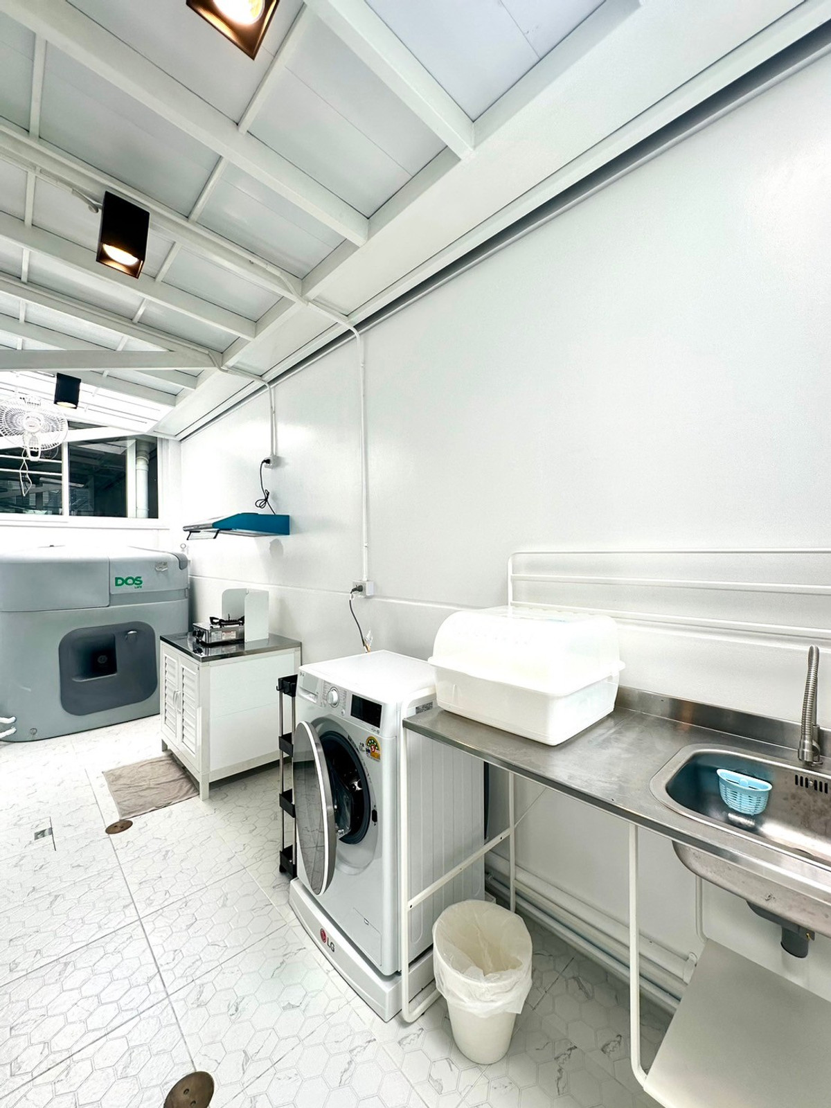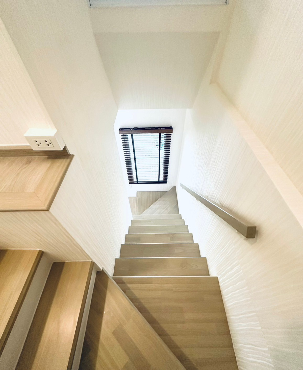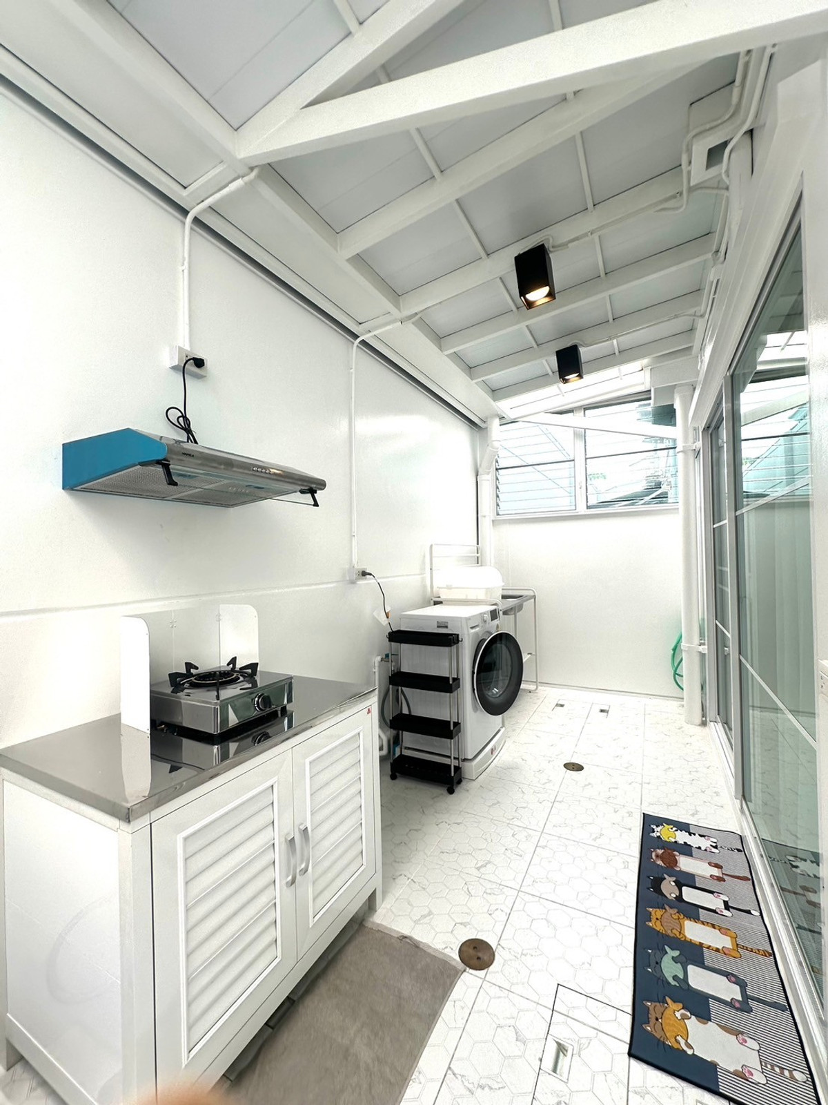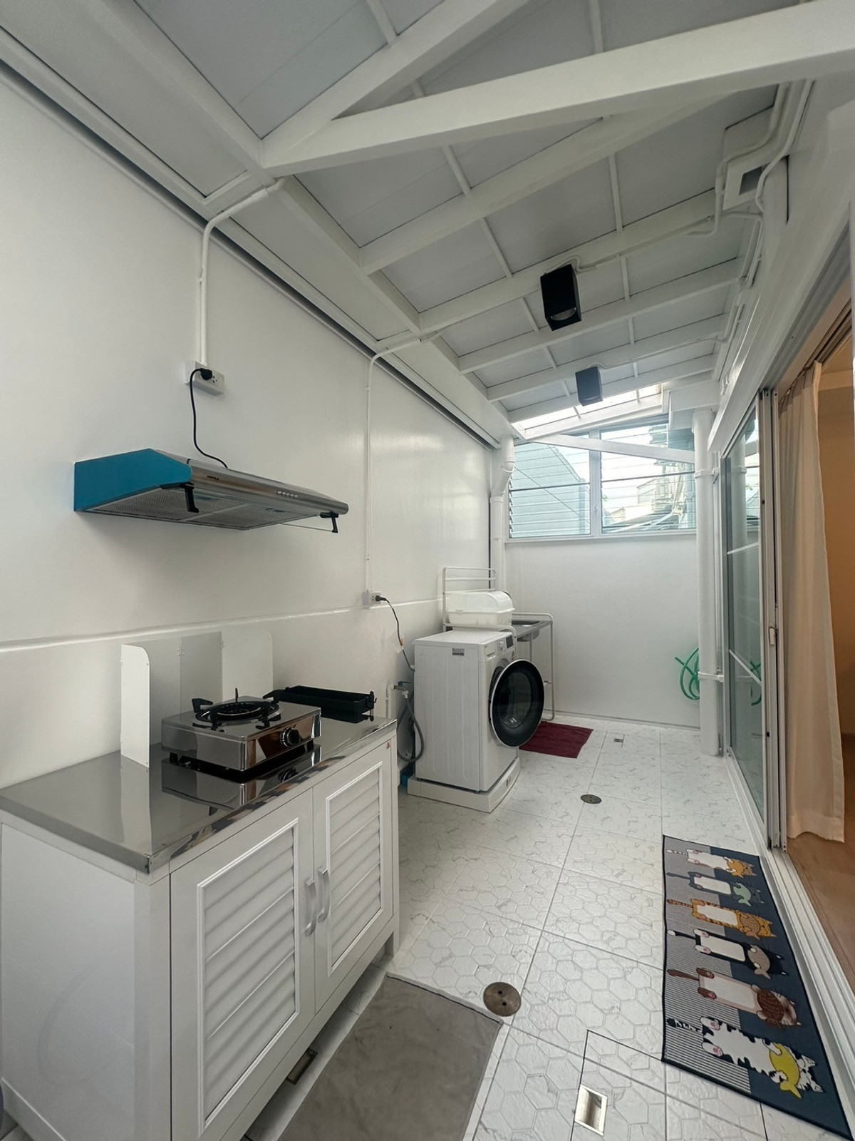 2-storey townhome, central plot, garden front, beginning of the project Land size 24.5 square wah Usable area 122+20 = 142 sq m. (including extension) ▪️3 bedrooms ▪️3 bathrooms ▪️1 living room ▪️1 we