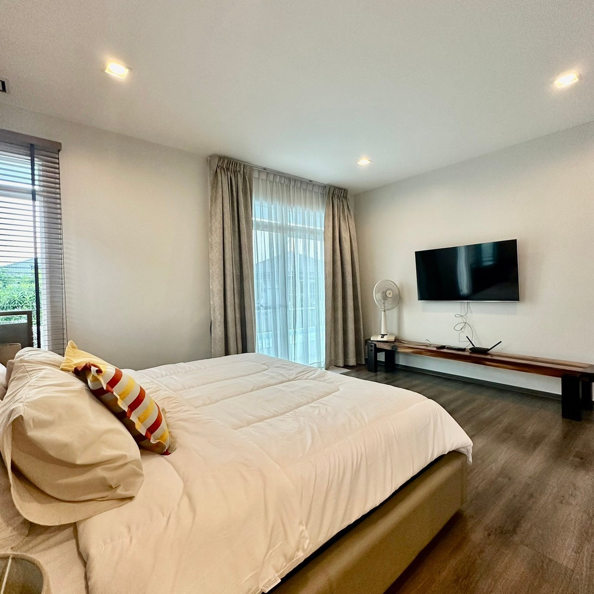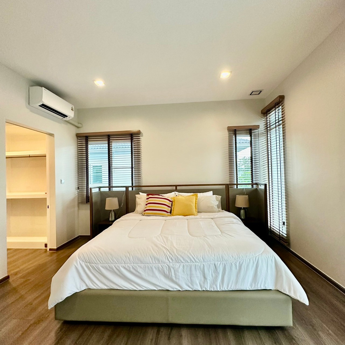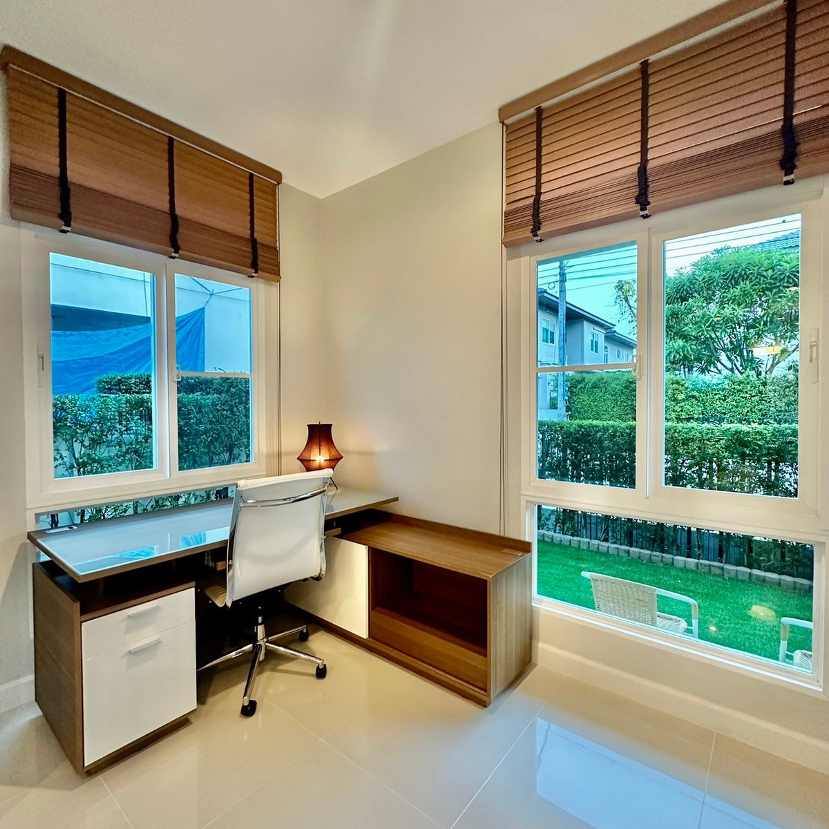 For rent, Manthana Village (2) Bangna-Km.7 Land size 62 square wah Usable area 185+addition 10 = 195 sqm. ▪️4 bedrooms ▪️4 Bathroom ▪️1 Living room ▪️1 Thai kitchen ▪️1 Multipurpose room ▪️2 Parking Rent (Full Fur) 89,000 baht Ready to move in. Location https://maps.app.goo.gl/kguW6cfxp87X1hAF6?g_st=al