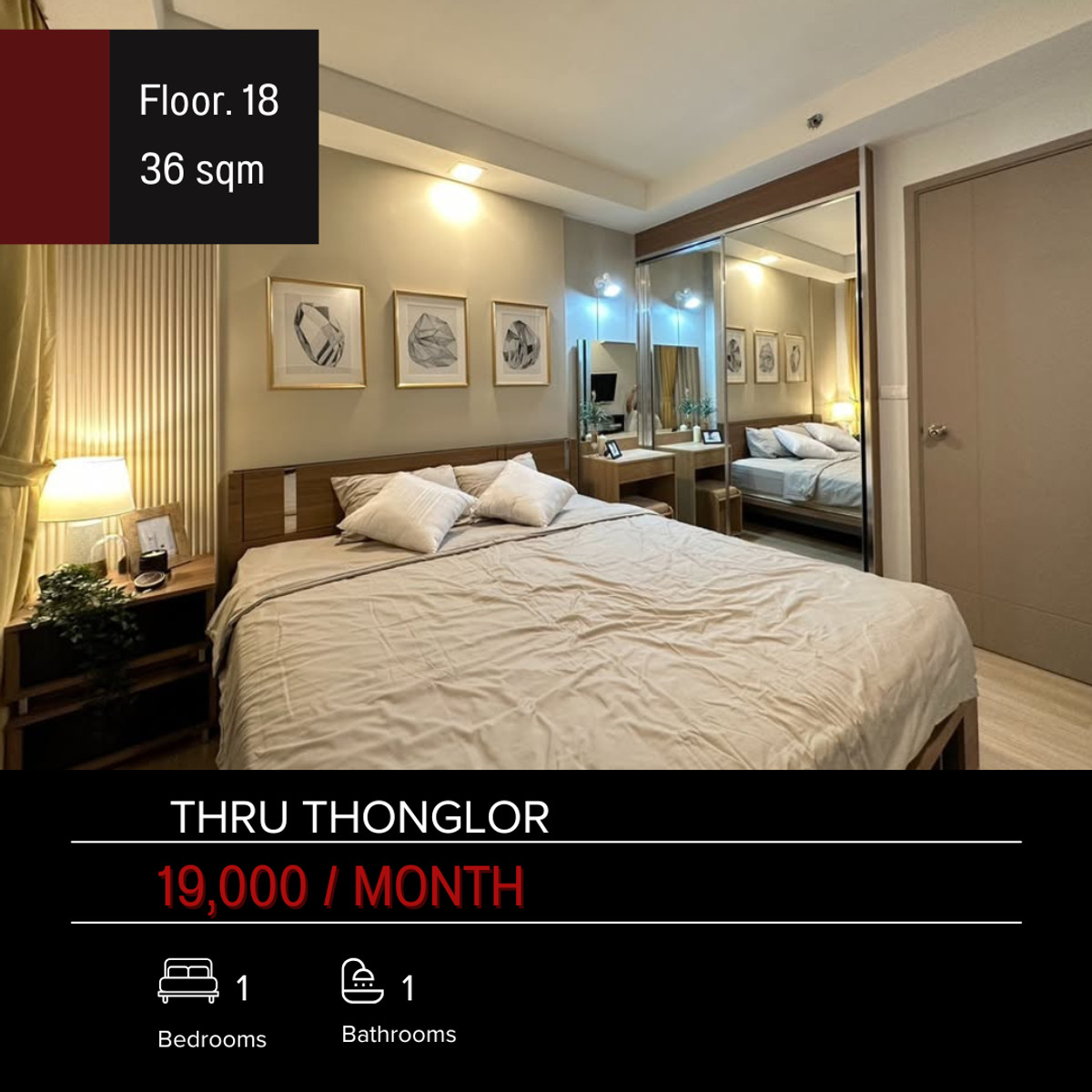 Condo : Thru Thonglor Size : 36 SQM Floor. 18 Type: 1 bedroom 1 bathroom Rent Price : 19,000 Baht Tel. Contact number ( Anda ) WhatsApp Contact number (Anda) Line @285gshuc #TT18