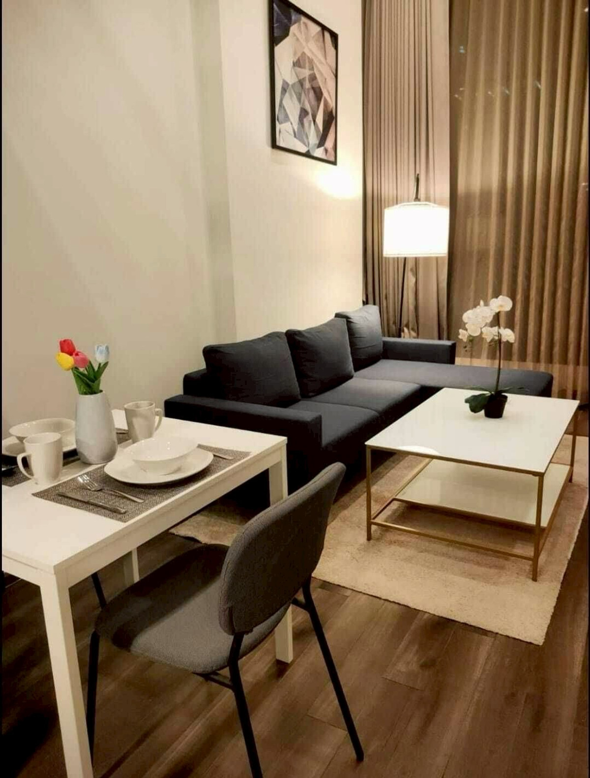 Condo ready for rent Knightbridge Space Rama 9 ✅️ 1 bedroom Duplex ✅️ Size 38 sq m ✅️ 16th floor 👌30,000.-/month 👌2 months deposit + 1 month in advance ✅️ Fully furnished as shown in the picture. ✅️Fa