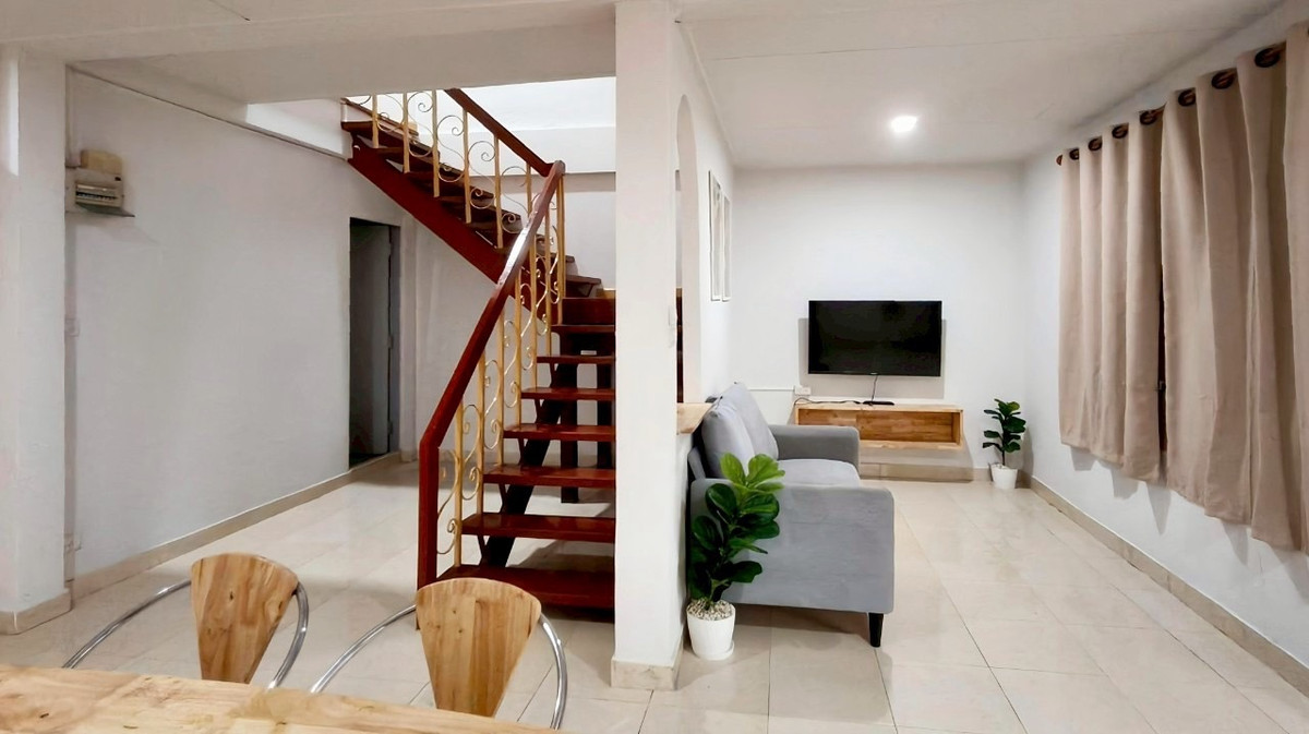 Townhouse for rent, corner house, 3 bedrooms, Thippawan Village. With furniture Just carry your bags and move in. Thepharak Road, only 5 minutes walk to BTS Yellow Line, Thippawan Station, only 12,500 baht per month Details