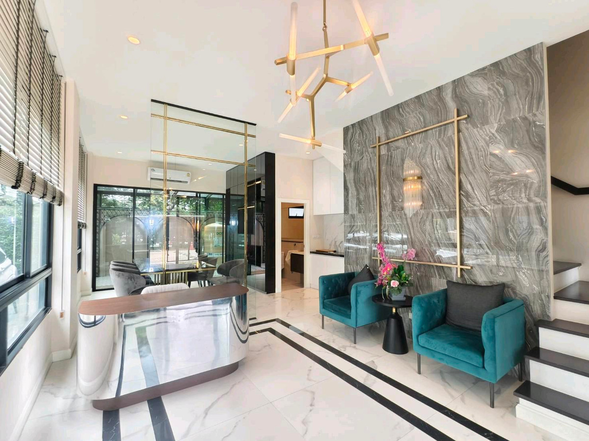 Home office for rent, 4 floors, corner unit 💯💯 Very beautifully decorated, ready to move in, fully furnished 💯💯 Air conditioning, all floors, all rooms 🧧🧧 Premium Place Kaset-Nawamin 2 project. 🌟🌟 (Ra