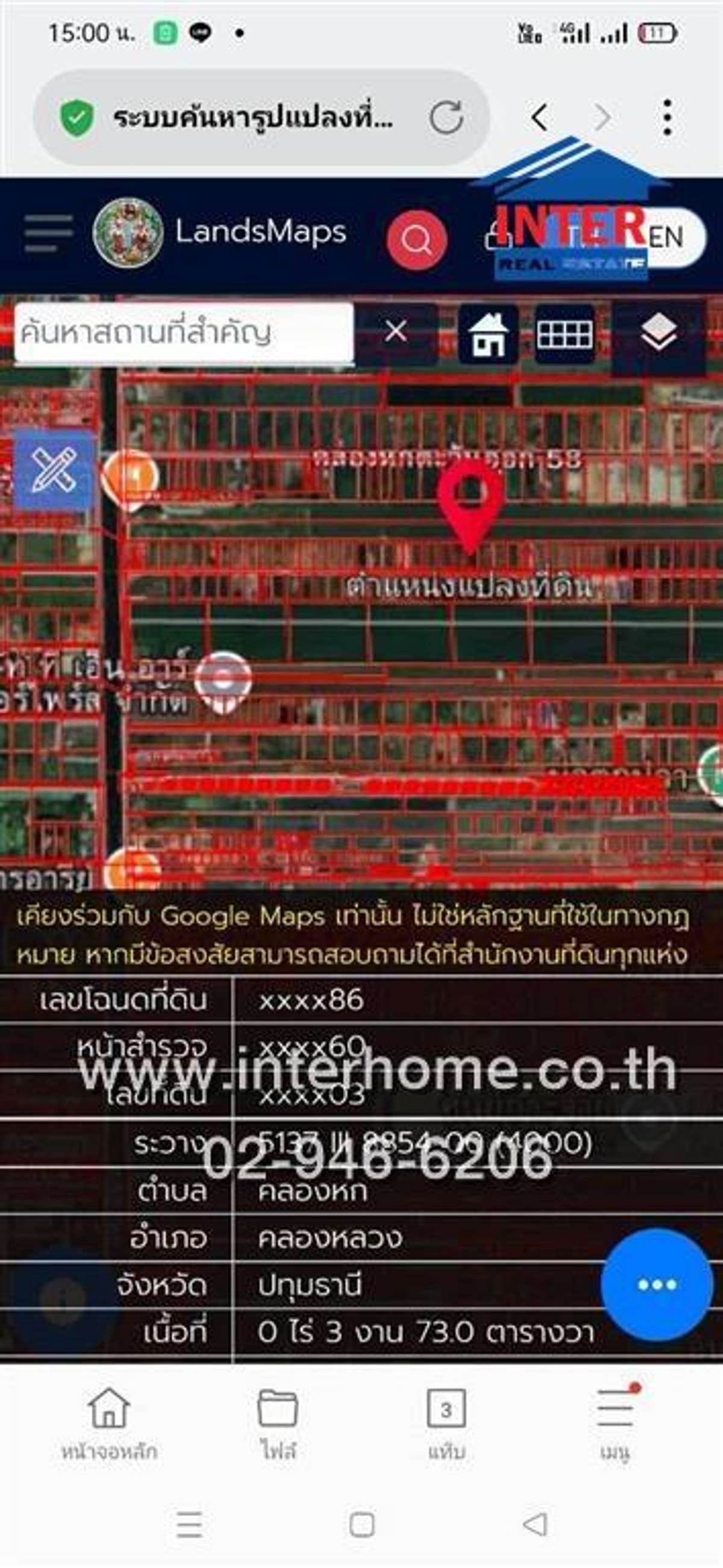 Mr. Thanyathorn Saengphet (Nok) Contact number: Contact number Office: Contact number Inquire via Line https://lin.ee/xTo07Pn Line ID: @interhome Property code: 65153 Size 373 sq m. Location: Land Soi Khlong Hok East 54 Rangsit-Nakhon Nayok Rd., Khlong Luang, Pathum Thani Details Near Big C Rangsit Khlong 6, College of Administration Rajamangala University of Technology Thanyaburi Empty land for sale. Soi Khlong Hok East 54 Rangsit-Nakhon Nayok Road, Khlong Hok Road, Khlong Hok Subdistrict, Khlong Luang District Pathum Thani Province is a garden rong land (Partially filled) Suitable for building a residence Good location, nearby places. : Near Big C Rangsit Khlong 6, College of Administration Rajamangala University of Technology Thanyaburi Thanyaburi District Office Thanyaburi Branch Land Office Thanyaburi Hospital convenient transportation Rangsit-Nakhon Nayok Road Khlong Hok Road Interhome Realty Estate Company Limited Interhome Realty Estate www.interhome.co.th Tel. Contact number https://www.interhome.co.th/propertydetail.php?propcode=65153