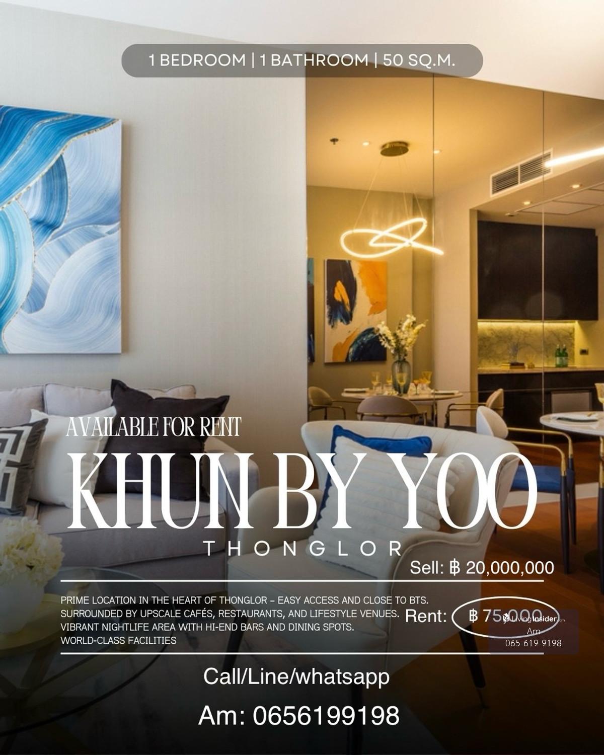 Khun by Yoo: 1bed 1bath 50sqm. Sell: 20,000,000 transfer fee 50/50 Rent: 75,000/mth Call/Line: Am Contact number https://line.me/ti/p/_MXfrDHcUp Whatsapp/Wechat: Contact number -Fully Furnished -Mid F