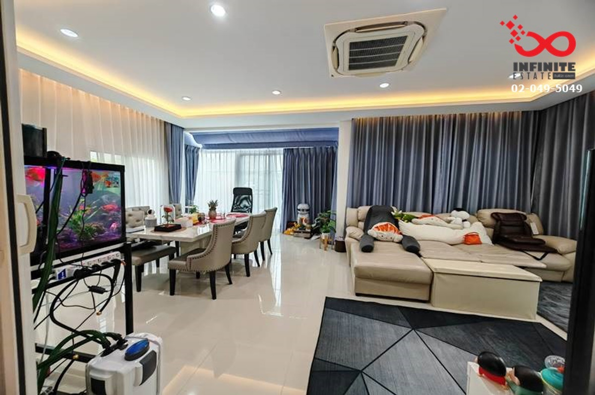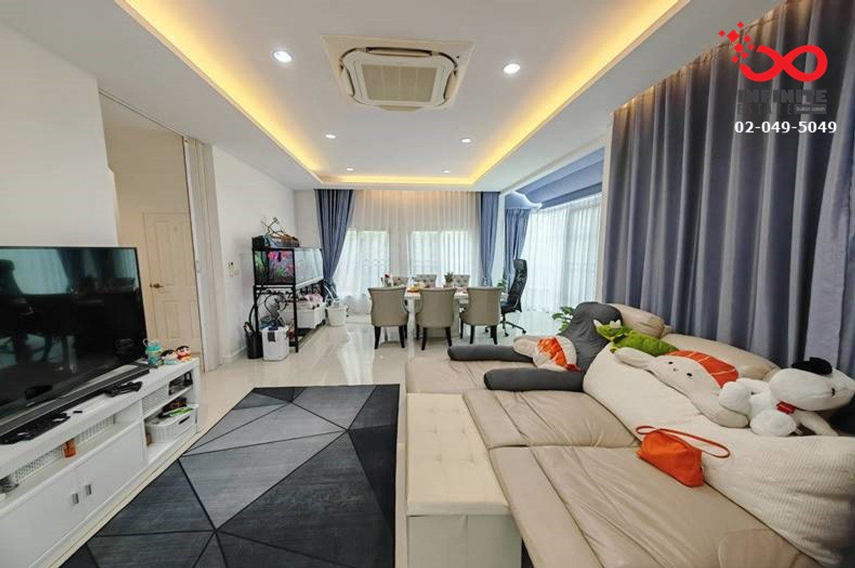 Contact: Mr. Jess Contact number office : Contact number Project name: Grandio Ramintra-Wongwaen / Grandio Ramintra-Wongwaen Location: Kanchanaphisek Road, Tha Raeng Subdistrict, Bang Khen District, Bangkok 10220 Area: 72.7 square wah | usable area 220 square meters Number of rooms: 4 bedrooms, 4 bathrooms, living room, kitchen, 1 multi-purpose room. Decoration: 5 air conditioners (water pump + water tank) Parking: 3 cars Common areas: Security / Clubhouse / Swimming pool / Fitness / Playground / Garden Property facing direction: South Review: Single detached house in Spanish style, corner house, Valencia style, has a usable area of 220 square meters, with an en-suite bathroom in every bedroom. There is a multi-purpose room on the ground floor that can be used as an office or as a room for the elderly. The location is on the road along the motorway. or Kanchanaphisek Road (Ramintra-Khubon area) can go up the Ramintra-At Narong Expressway. (Chatuchot Checkpoint) Nearby places : Shopping and Lifestyle Places - Fashion Island - The Promenade - Hathaimit Market - Big C Market Khubon - Panya Market educational institution - Nawaminthrachutit School Bangkok hospital - Synphaet Hospital, Ramintra - Nopparat Ratchathani Hospital - Inthrarat Hospital