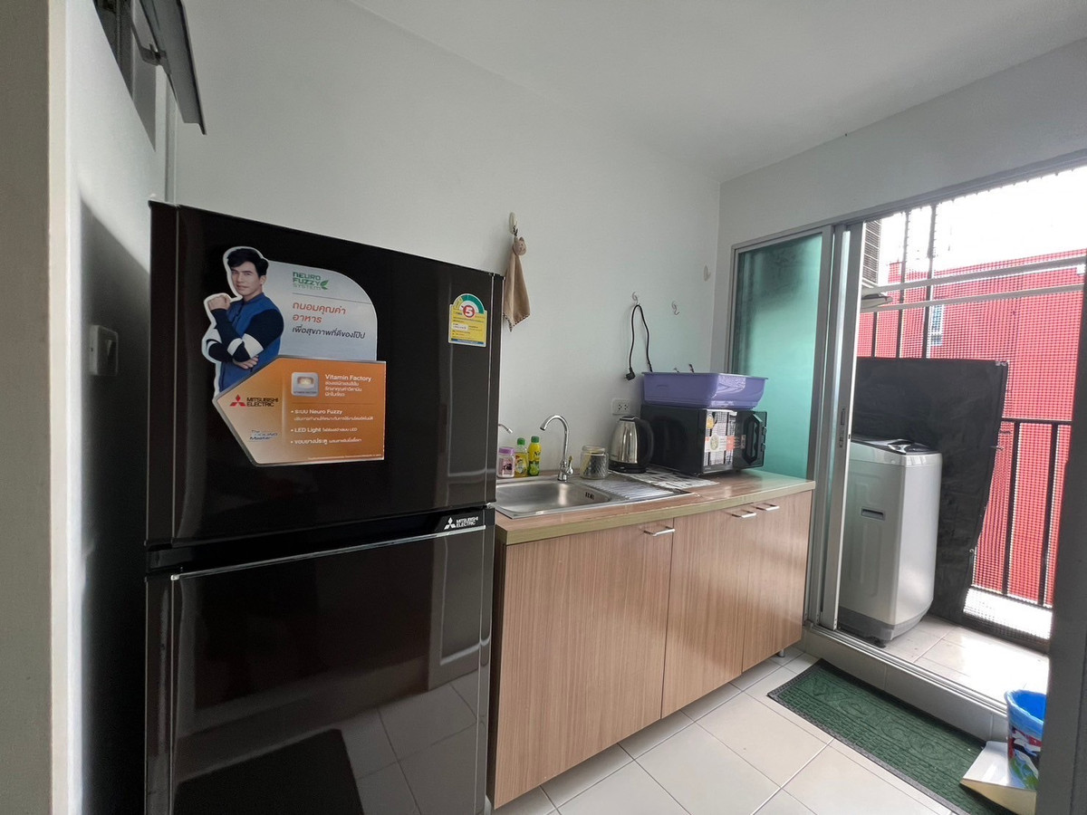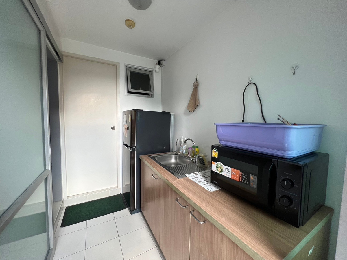 Condo for rent, D Condo Ramintra, 7th floor, Building B, beautifully decorated, ready to move in 1 bedroom, 1 bathroom Complete furniture and electrical appliances - Bed with 5 foot mattress - Wardrobe - Dressing table with 1 chair - Air conditioner - Sink - Refrigerator - Microwave - Washing machine - Water filter - Water heater - Sofa - Dining table with 2 chairs - Smart TV Rental price 8,500 baht/month Facilities – Swimming pool, fitness – Security guard, CCTV Location Ramintra Rd., Tha Raeng Subdistrict, Bang Khen District, Bangkok 10220 Important places nearby Central Ramintra Fashion Ireland next to the MRT Pink Line, Mayalap Station Tel. Mr. Mac (owner) Contact number