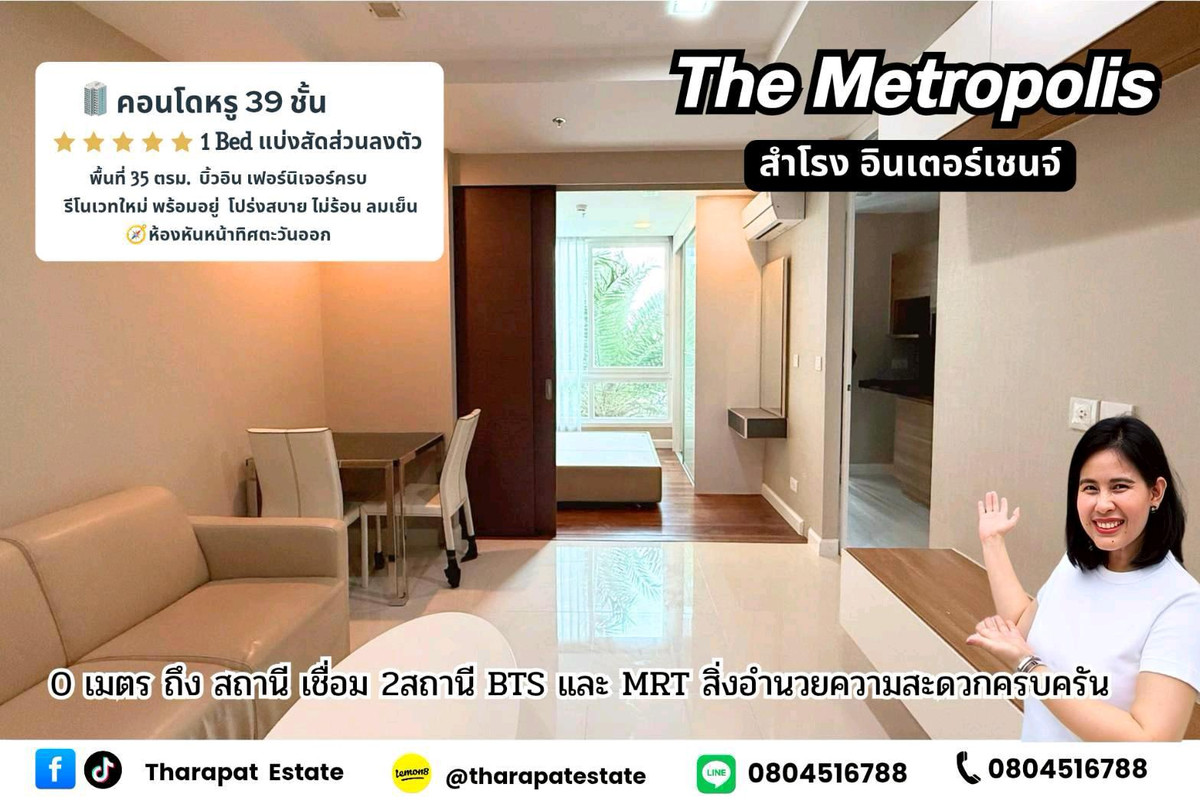 🏙️ Luxury condo for sale, The Metropolis Samrong Interchange 📍 0 meters next to the BTS — walk from the condo to the station! Convenient for every trip, close to both BTS and MRT Samrong 🚆 Connects 2 electric train lines: light green (BTS Samrong) and yellow (Thepharak Station), only 2 stations from BTS Bangna ----------------------------- ✨ Condo with central facilities comparable to Luxury Residence, convenient • luxurious • worthwhile in every dimension of life Answering the needs of people working in the Sukhumvit-Bangna-Samrong area. The residence is perfect. Rent it out and get a good return 💰 ----------------------------- 🏡 Room size 35 sq m. | 1 bedroom, 1 bathroom ✓ Wide room, divided into perfect proportions ✓ Airy, good view, cool breeze, not hot ✓ Closed kitchen helps prevent food odors ✓ Built-in complete: wardrobe, makeup table, kitchen counter ✓ With electric stove + hood ⭐Price 2.88 million baht ⭐ ----------------------------- 💎 Premium hotel-level amenities ✨ Lobby, luxurious, airy 🏊 2 large salt-water swimming pools + childrens pool 🏋🏻‍♀️ Fitness with full equipment♨️ Onsen Rooftop, soak in warm water and view the panoramic river 🏌🏻‍♂️ Golf Simulator, a state-of-the-art virtual golf practice room 💼 Co-working Space, private work space 🎬 Private Theater, private movie theater, accommodating more than 15 seats 🌿 Garden & relaxation area 🎯 Multi-purpose room / 🏸 Badminton court 🏪 Convenience store + washing machine complete in the project 🛍️ Community Mall in the project🚗 Parking supports more than 40% of the area (not including double cars) 🛡️ 24-hour security system with CCTV cameras ----------------------------- 📍 Prime location in the heart of Samrong • Next to BTS & MRT Samrong station (actually 0 meters!) The Metropolis (Samrong Interchange), a condo next to the BTS on the end of Sukhumvit Road. It provides a central area comparable to a Luxury Residence, a connection point for 2 electric train lines: light green (BTS Samrong) and yellow (Theparak Station), only 2 stations from BTS Bangna, 2.7 km. from BTS Bearing. • Near the Bangna-Trad Expressway 3.3 km. Surrounded by large department stores: The Bangkok Mall, Imperial World, Big C Samrong • Near Assumption Samutprakan School / St. Joseph Thipawan / St.Andrews / Bangkok Phatthana • Near Samrong Hospital / Chularat Hospital / Paolo Hospital Samutprakan ----------------------------- ⭐Price 2.88 million baht 💸 Installments starting at only 9,xxx baht/month 👩🏻‍💼 Income starting at just 25,000 baht or more, you can get a loan! (Can jointly borrow) 💬 We take care of credit at every step , pushing every case, every career. If you dont get a loan, we have a team to help analyze it for free. Ready to take care of you from documents until transfer day ✨ ----------------------------- 📞 If interested in making an appointment to see the actual room , please message Pum 💕 ☎️ CALL : Khun Pum Contact number 📲 LINE : Contact number👉 Free loan processing! We take care of everything. both houses and loans Push every case through! ----------------------------- #TheMetropolisSamrong #TheMetropolisSamrongInterchange #The Metropolis Samrong Interchange #Pum sells beautiful house #Pum sells a renovated house #Pum sells a condo in a good location #Sells a second hand condo, newly decorated #Condo for sale next to the BTS #Condo for sale next to BTS