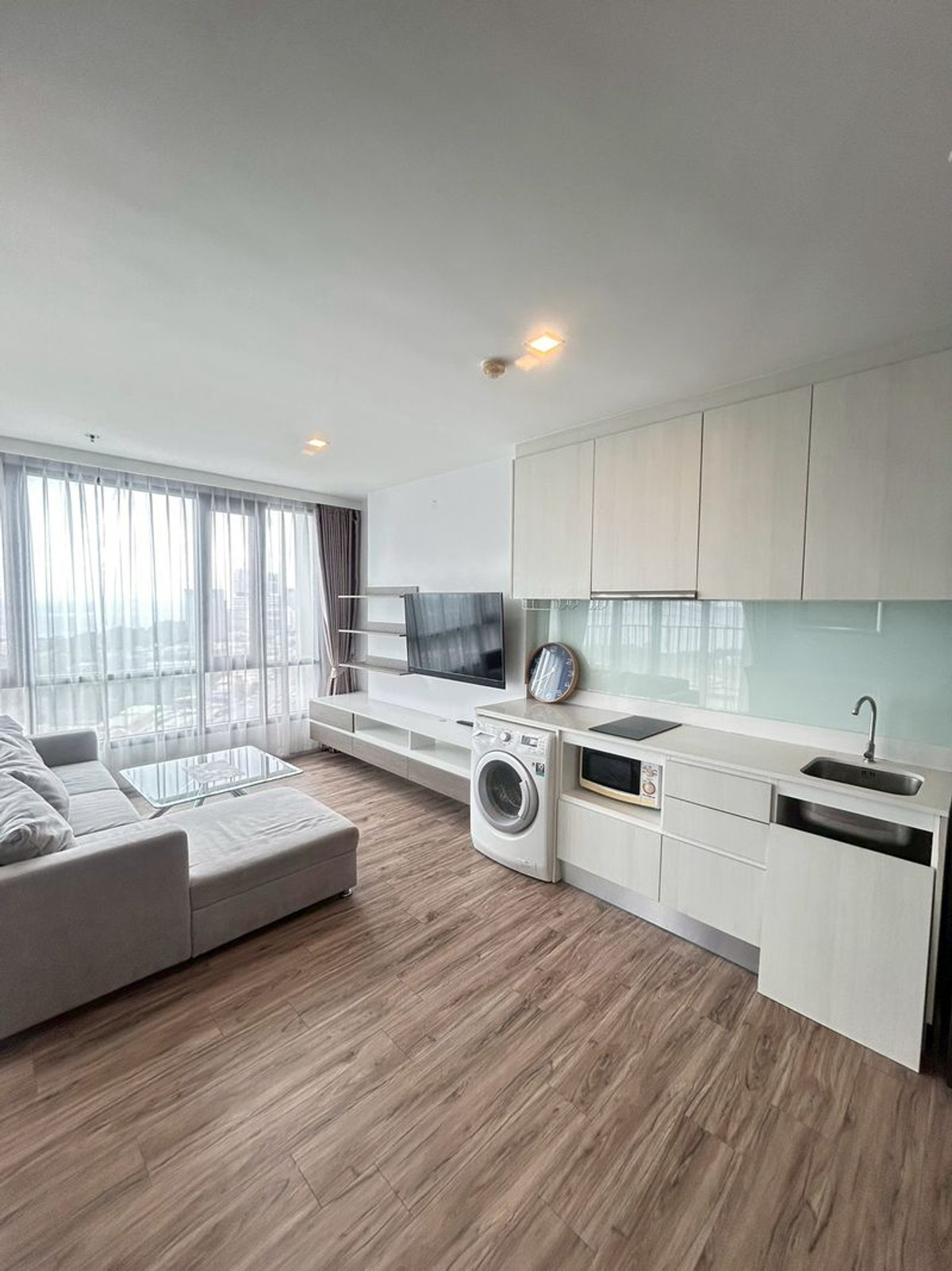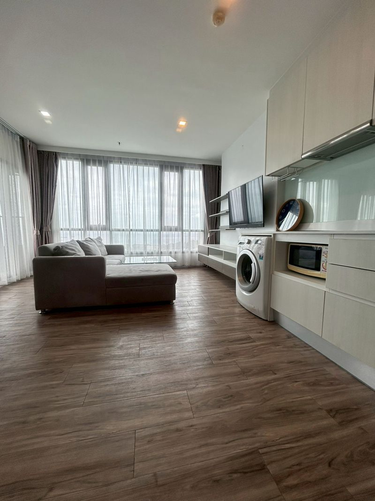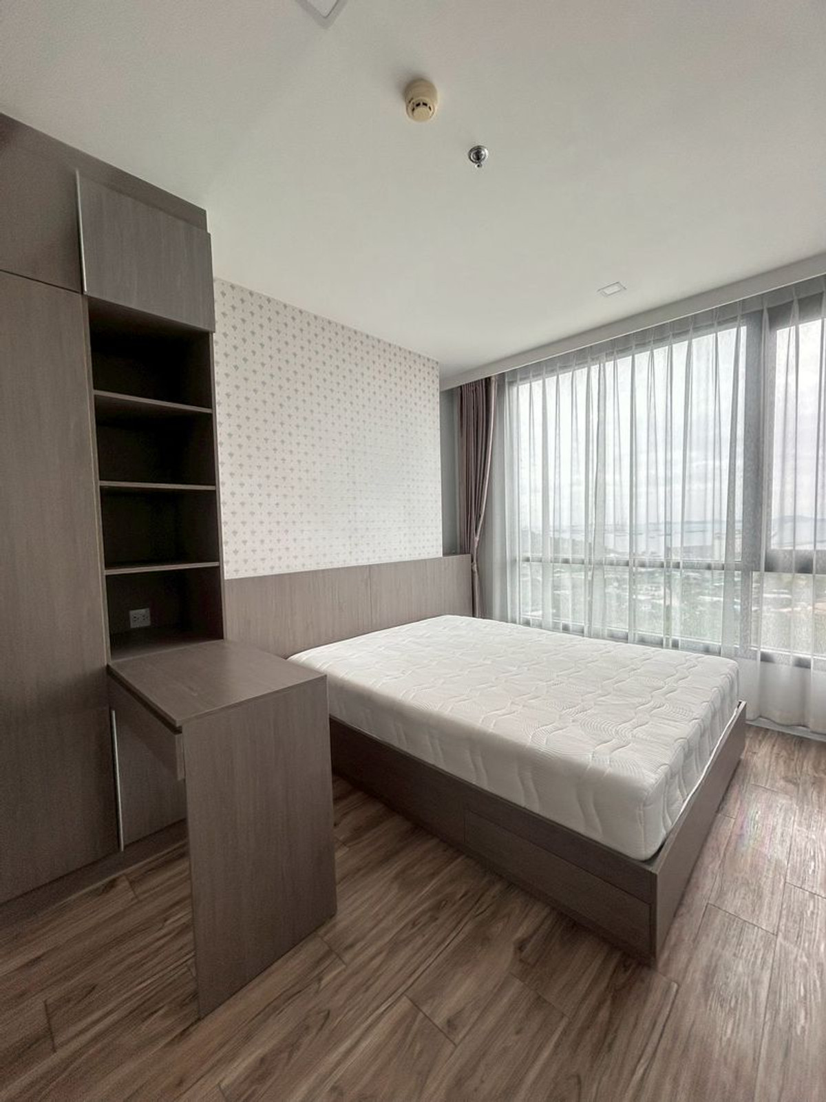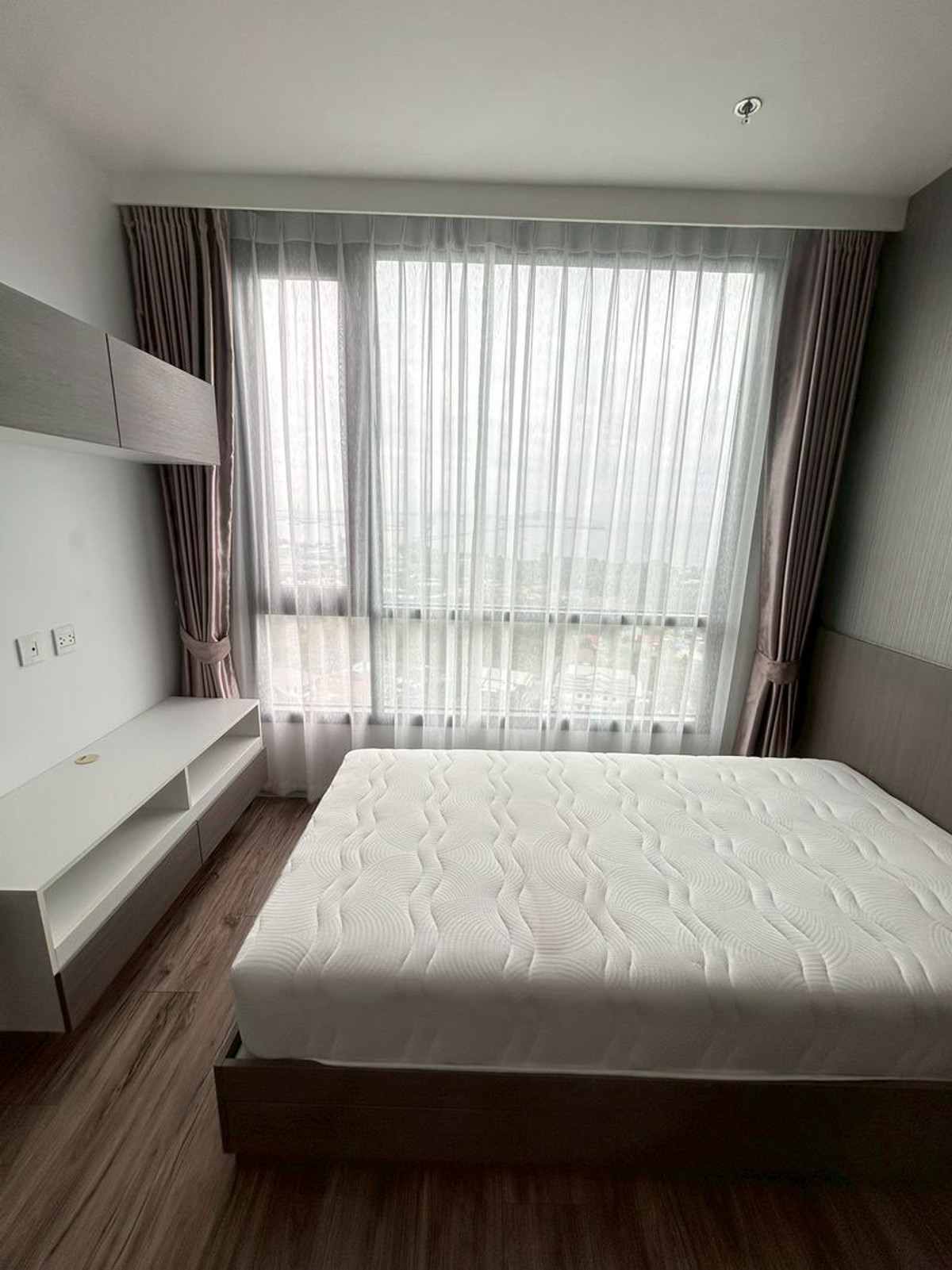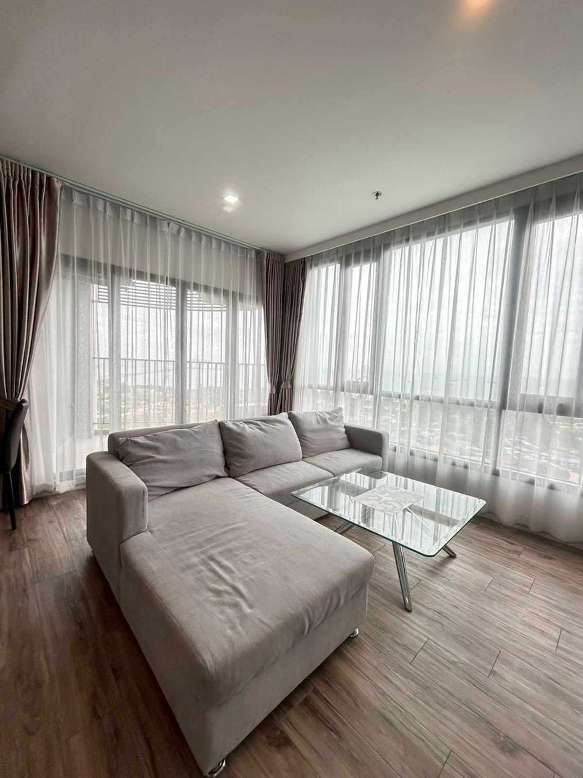 Details: Corner room, 20th floor, beautiful sea view from every angle. Both bedroom and living room Wide area 62 sq m 2 bedrooms, 2 bathrooms (with private Jacuzzi) Separate kitchen. With a 4-seat dining table sea view balcony. Can receive the breeze all day Fully furnished. Ready to move in complete with electrical appliances: air conditioners in every room, 2 LED TVs, refrigerator, washing machine. Kitchen set ready to use Rent 23,000 baht/month 2 month deposit + 1 month advance Luxurious condo Sea view in every room With complete facilities in the heart of Sriracha, convenient travel, close to restaurants, cafes and department stores F-A2