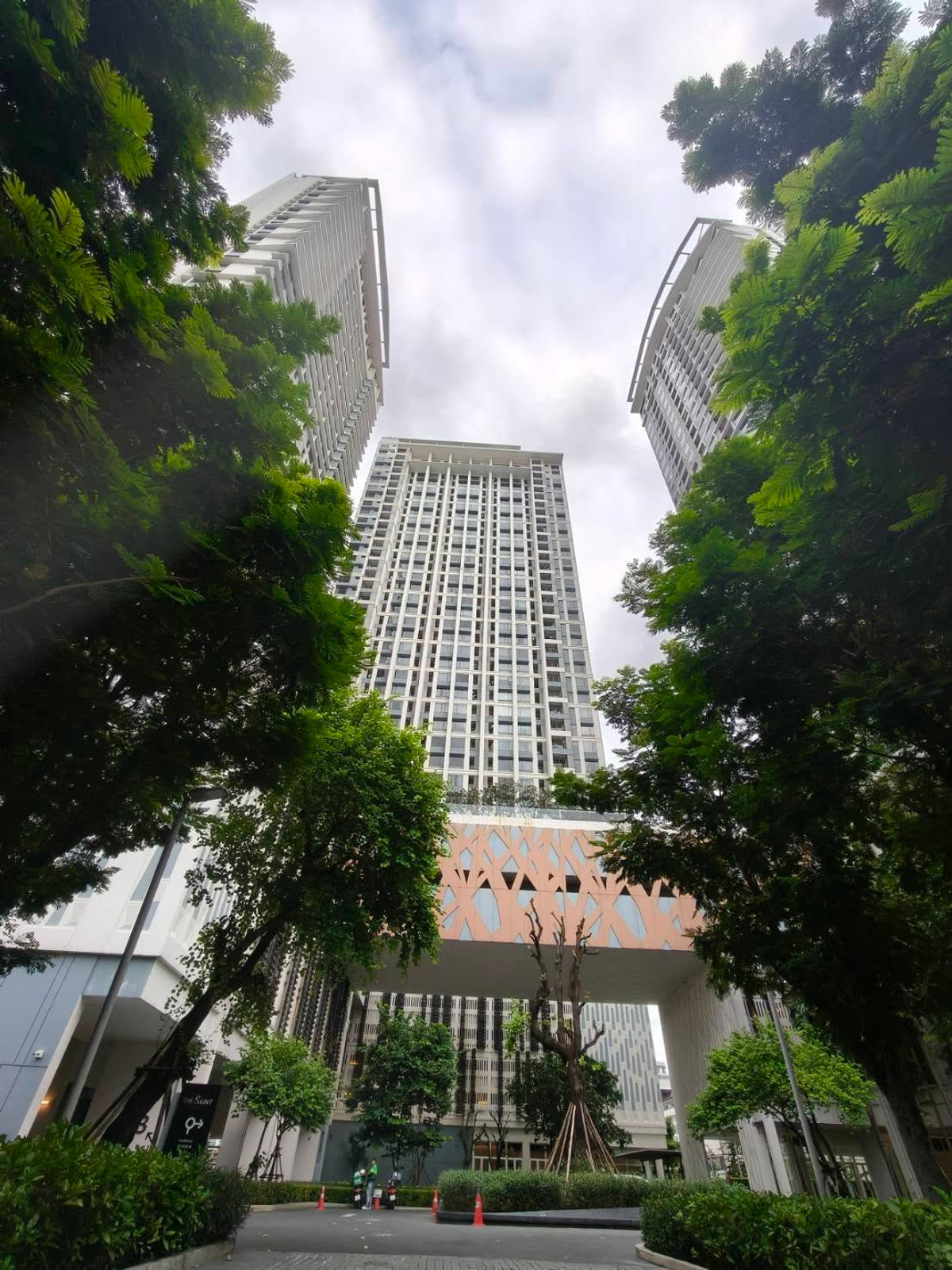 Condo for rent The Saint Residences / The Saint Residences ฿28,000 / month 🏢 Size 57 sq m | 2 bedrooms, 2 bathrooms | 39th floor, corner room, quiet 🛋 Fully furnished: latex mattress / sofa bed 💻 Elec