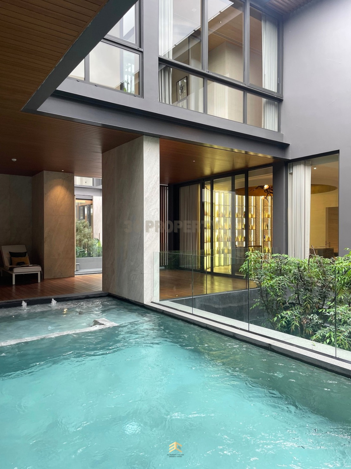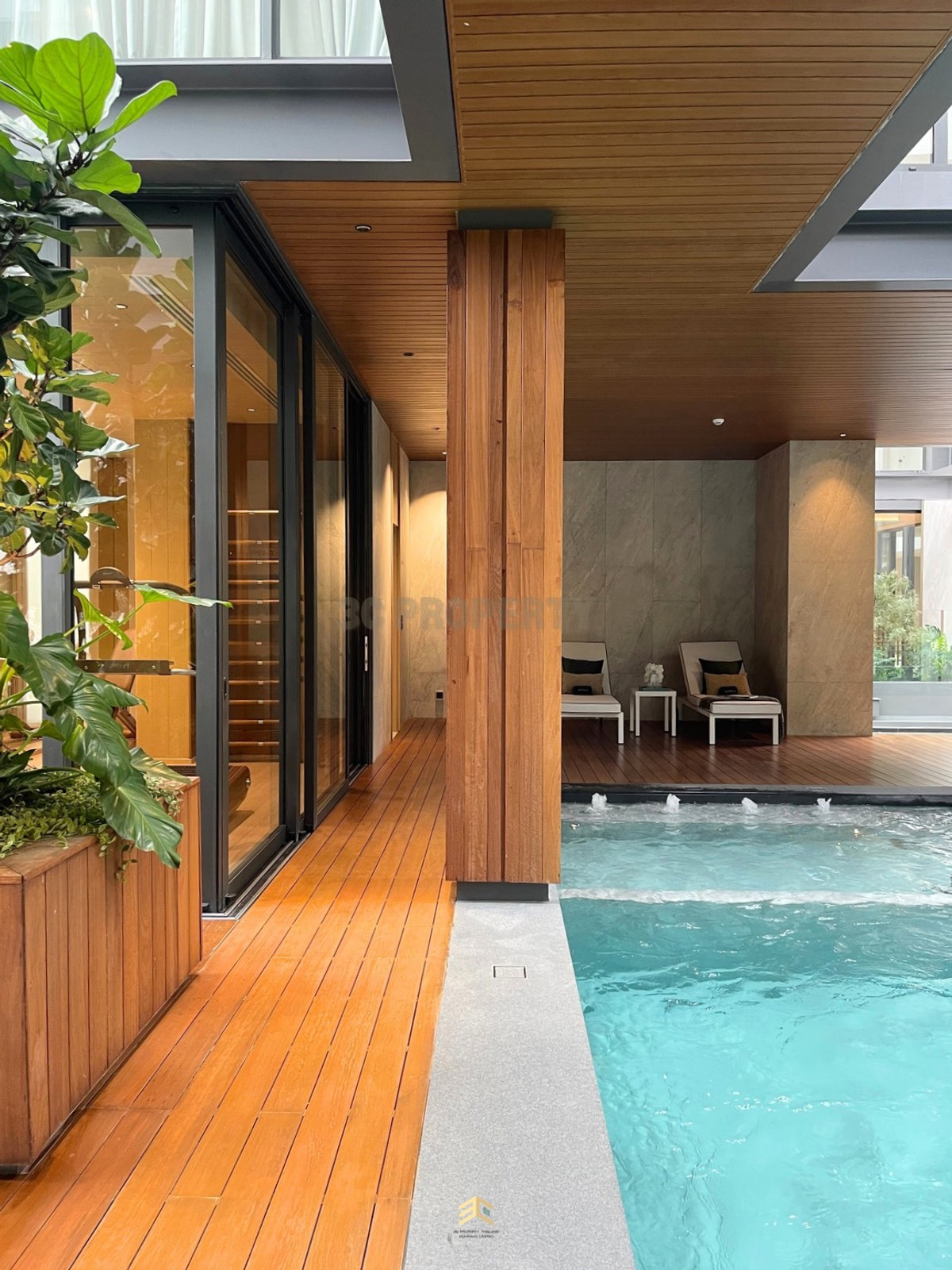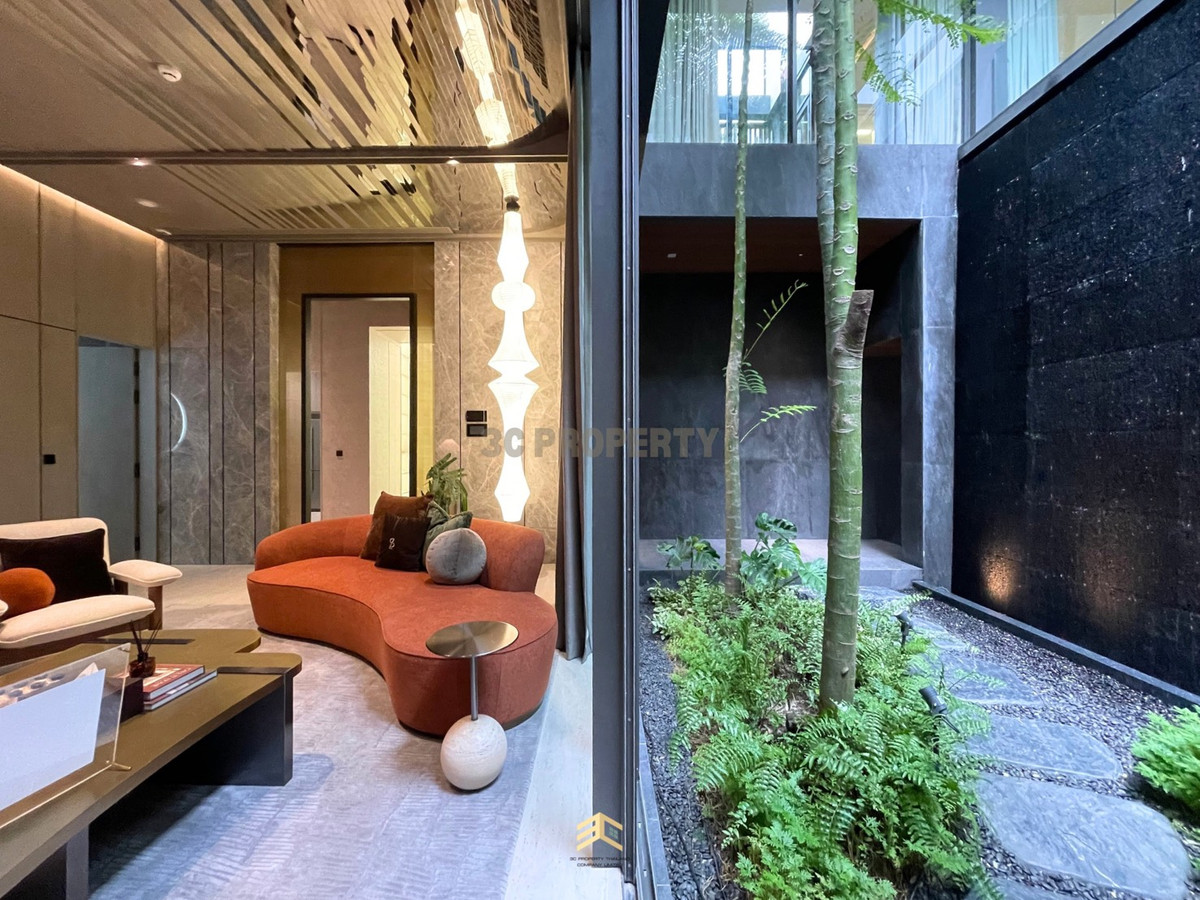 Reflecting superior taste and elevating the level of Ultra Luxury to be more valuable than ever. "SONLE Residences" Materpiece level project, there are only 5 houses in the world This one has a usable area of ​​1,365 square meters on 179 square meters of land 5 bedrooms / 8 bathrooms / 5 parking spaces 🔺 Sample home 350,000,000 baht Emphasis on being truly Super Private Residences A house that provides luxury. Blend with nature giving residents true relaxation comes with a courtyard garden. With an Infinity Edge swimming pool on the 2nd floor and the sound of the Over Flow waterfall Advance registration only. https://page.line.me/3cproperty For more information, Kee Contact number
