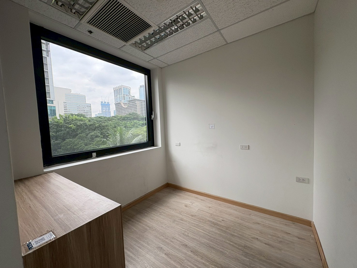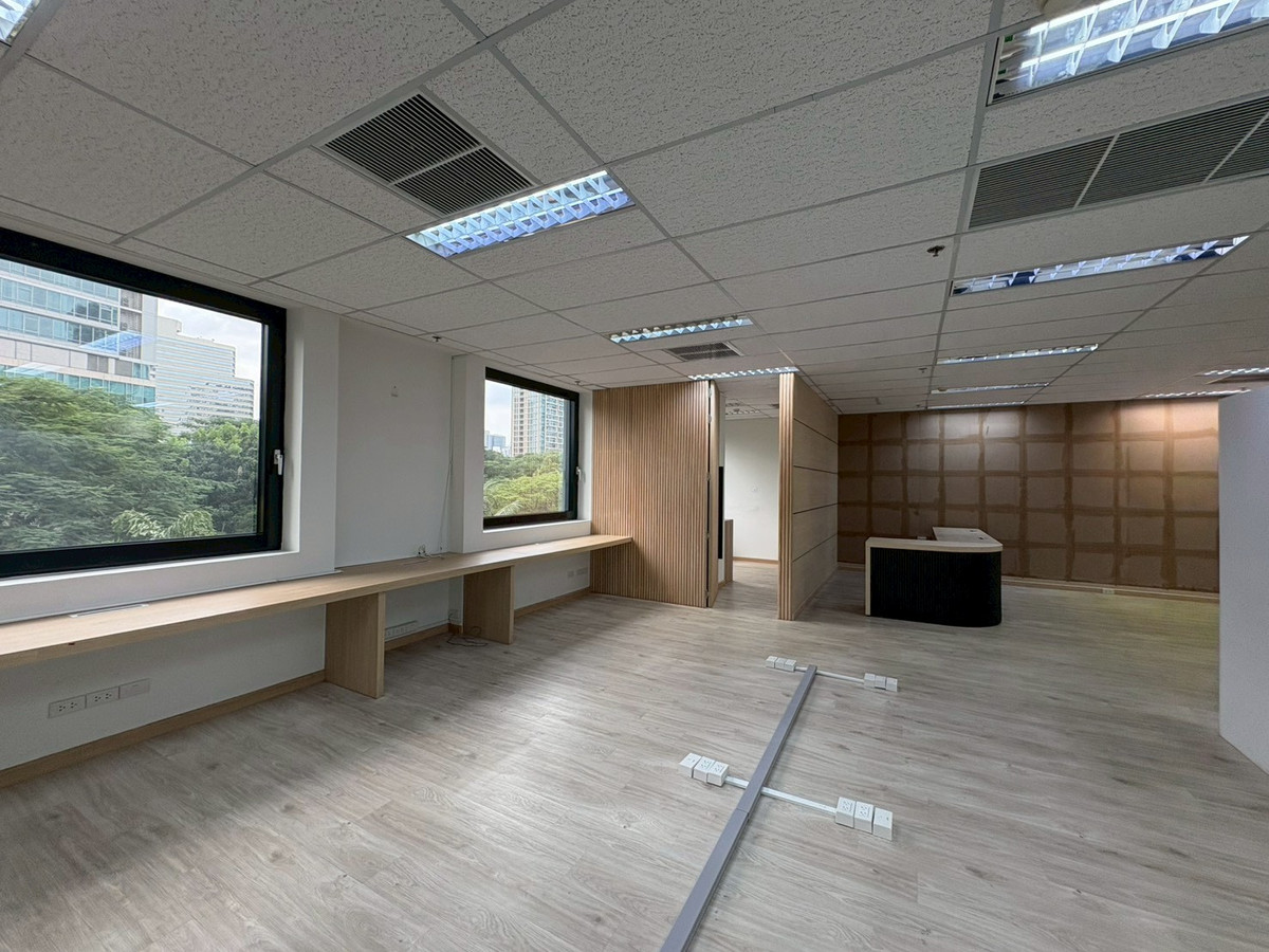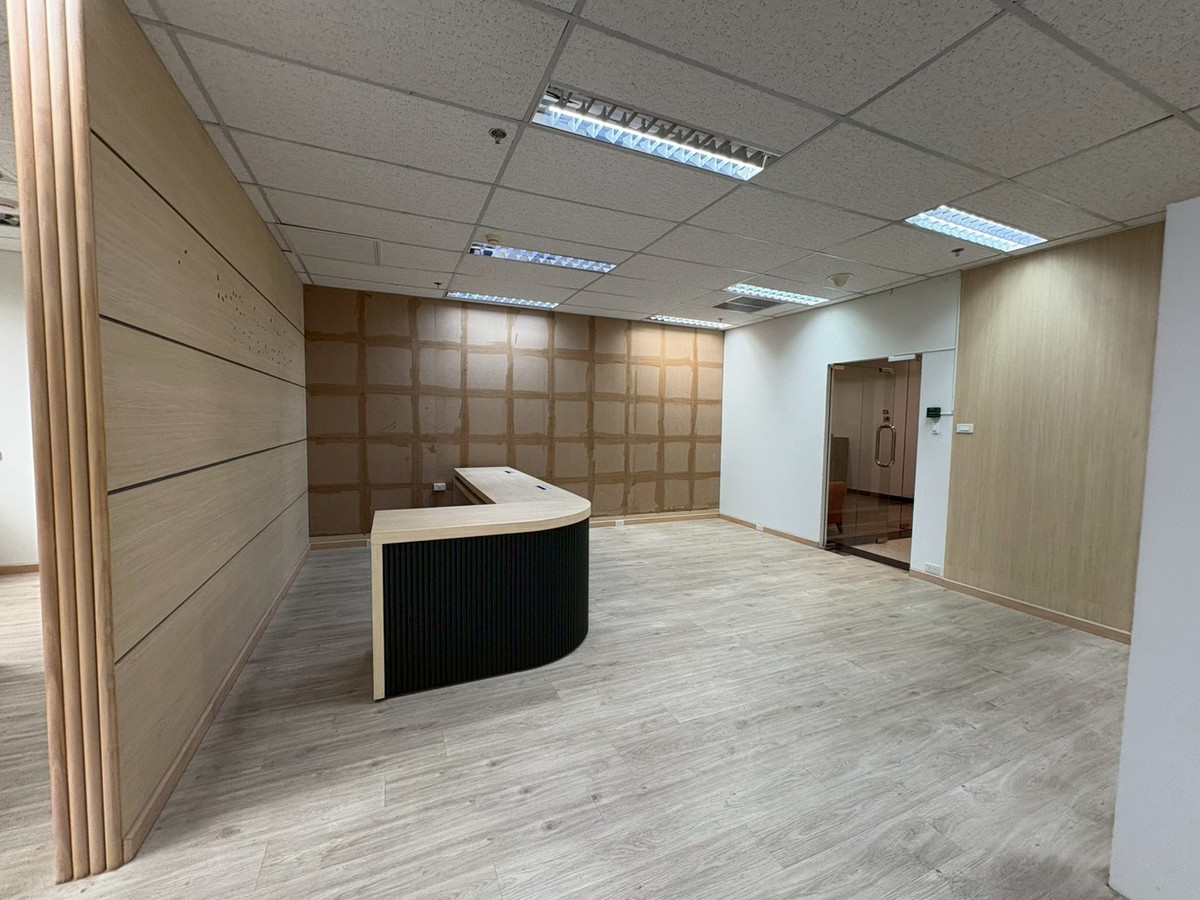 Prime Office Space for Rent For rent: A 134 sqm office space located on the 24th floor of the 208 Wireless Road Building. This building is situated in a prime CBD location on Wireless Road, one of Bangkok's most prestigious and greenest business addresses, surrounded by embassies and leading corporations. Key Highlights: Partly Fitted Condition: This unit saves tenants initial fit-out costs and time. The space is already equipped with laminate flooring and completed ceilings (as pictured). Flexible Design Potential: The unit includes a built-in reception counter and some shelving. It offers excellent flexibility for tenants to bring in their own loose furniture and design the space according to their corporate identity. Good Layout: Features one glass-partitioned room (ideal for a meeting room or executive office). The overall space is bright, receives excellent natural light, and offers pleasant city and green views. Rental Details: Building: 208 Wireless Road Building Size: 134 sqm Floor: 24th Rental Rate: 1,000 THB per sqm/month Condition: Partly Fitted
