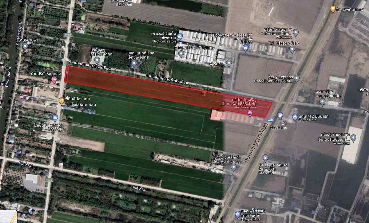 Land for sale, Lat Lum Kaeo District, Pathum Thani, area 32 rai 2 ngan 47 square wah. Adjacent to the road on 3 sides, in front of Kanchanaphisek Road. The side is next to the road along Kamnan Yuea Canal. The back is next to road 1030. If interested, inquire for more information at Tel: Contact number (Doctor) Featured: - The land makes good use of the road. Because it is next to the road on 3 sides There is a canal along the land. - Land suitable for farming, agriculture or a large housing development. - Land next to Kanchanaphisek Road -------------------------------------------------