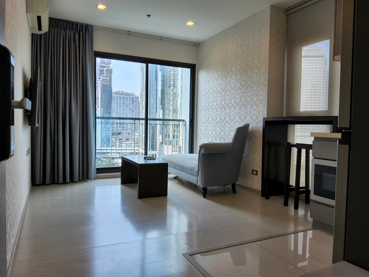 Size 50 Sq.M. - 1 Bedroom (with bathtub), 1 Bathroom 14th Floor with beautiful panoramic city view Decorated with genuine wood furniture and luxury sofa, ready to move in Rent 37,000 Baht/Month Rhythm