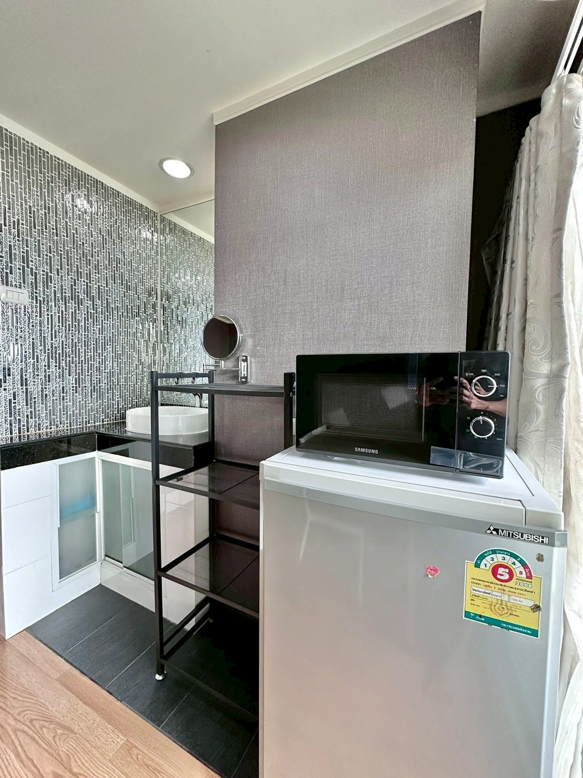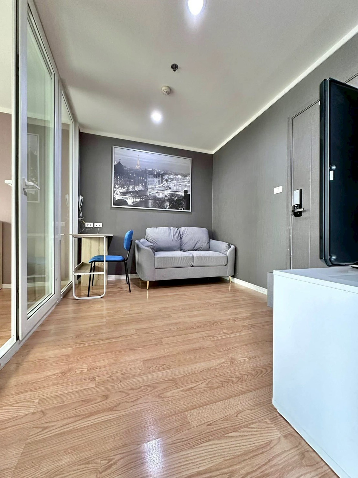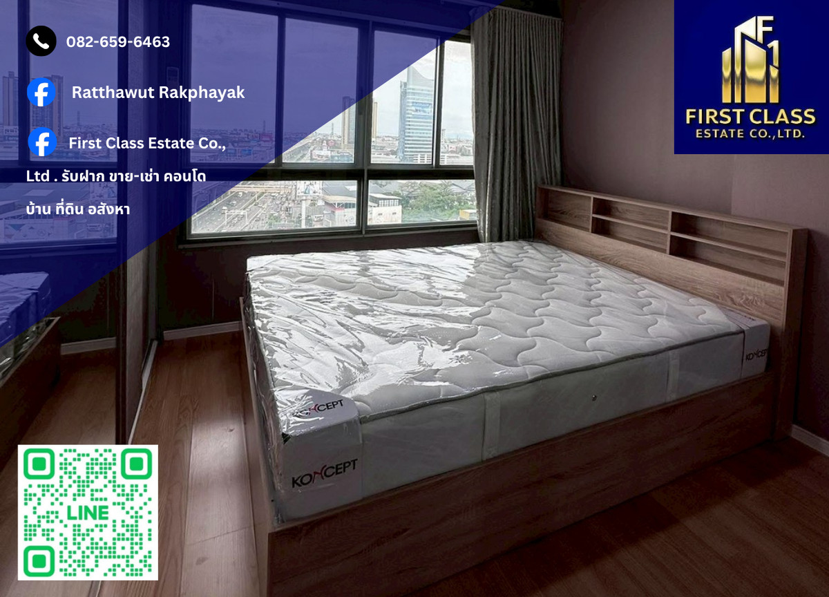 😍✔✔ Rent Building A, 15th floor, corner room, 8,000 baht / month ✔✔ ✔✔ Sell Building A, 15th floor, corner room, 1.49 million baht ✔✔ – 😘 Special corner room, room size 26.5 sq m., 1 bedroom, 1 living room 1 bathroom. Balcony, beautiful view, no blocking buildings, view of Burapha Withi Expressway, not next to anyone, 15th floor, Building A 😘Highlights of the room: ✔Corner room, on the far edge, the wall on the other side of the room is not connected to another room. Beautifully decorated room, very new room, new wallpaper installed throughout the room ✔Building A, the least number of units, rooms in the project, not crowded, not crowded ✔ Plus several new sets of furniture. Good quality sofa (new), bed with good mattress. (new), bedroom partition with 2 layers of safety glass to prevent outside noise, 2 layer lock system, safe to live in. Shelves, work table, dining table set (new), refrigerator, microwave (new), TV cabinet, 43 inch TV and 2 Daikin Inverter air conditioners ✔ Completely renovated bathroom (worth 150,000 baht), special edition American Standard sanitary ware, The hot and cold water system is a built-in system for both the sink and rain shower. The glass that separates the shower is good safety glass. The floor, walls, balcony, and glass have all been replaced ✔The balcony outside has a netting to prevent disturbing pigeons ✔The door to the room is digital. Use a key card (Samsung Digital Door Lock). Which is an advanced security system ✨✨✨✨✨✨✨✨✨✨✨✨✨✨✨✨ 😘Project highlights: -Condo, good location in the heart of the prosperity of Bangna area -Convenient up and down the expressway. and Kanchanaphisek Road - There is a van service from the condo to BTS Udomsuk Station - next to the main road Bangna-Trad. In front of the project is a bus stop. Convenient to travel 😘Near the shopping center MEGA BANGNA, Lotus, Big C Suvarnabhumi Airport. and Ramkhamhaeng University Huachiew Chalermprakiet University and ABAC University - nearby there are important places such as Ratchawinit Bangkaew School, PRINC Hospital, Sikarin Hospital, Thainakarin Hospital, IKEA Central Bangna Department Store – Facilities in the project are complete, such as - swimming pool, fitness - security guard, project CCTV, Key Card door - shop, laundry - garden - others. (Playground) ✨✨✨✨✨✨✨✨✨✨✨✨✨✨✨ ✔✔✔ Interested or need more information ✔✔✔ Contact Contact number Line @firstclassestate https://lin.ee/7cRLIA3