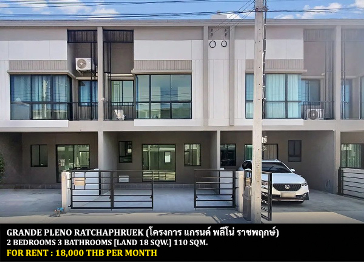 TOWNHOUSE FOR RENT PROPERTY PROJECT : Grande Pleno Ratchaphruek LOCATED : Ratchaphruek Rd. , Om Kred , Pakkred , Nonthaburi PROPERTY TYPE : Townhouse BEDROOMS / BATHROOMS : 2 Bedrooms 3 Bathrooms LAND SIZE : 18 Sq.w. USABLE AREA : 110 Sq.m. CONDITION : Fully furnished NEARBY : - Denla British School - Robinson Lifestyle Ratchaphruek ------------------------------------------------------- RENTAL PRICE : 18,000 Baht / Month ------------------------------------------------------- Please contact us for viewing or more details CALL : Contact number Nat [Nathan] LINE ID : @roomfinderthailand [Put @ Front ID] WHAT'S APP : Contact number WECHAT : saintz69 EMAIL : Contact email llllllllllllllllllllllllllllllllllllllllllllllllllllllllllllllllllllllllllllllllllllllll ROOMFINDER (THAILAND) CO.,LTD. PROPERTY AGENTS HOMEPAGE : www.facebook.com/roomfinderthailand ------------------------------------------------------- บริษัท รูมไฟเดอร์ (ไทยแลนด์) จำกัด ตัวแทนรับฝาก ขาย เช่า อสังหาริมทรัพย์ทุกชนิด