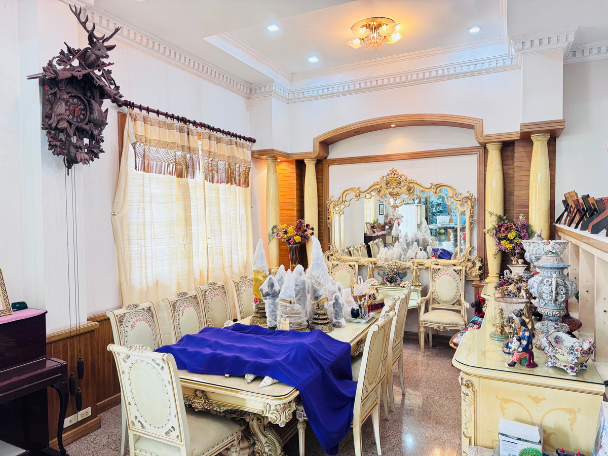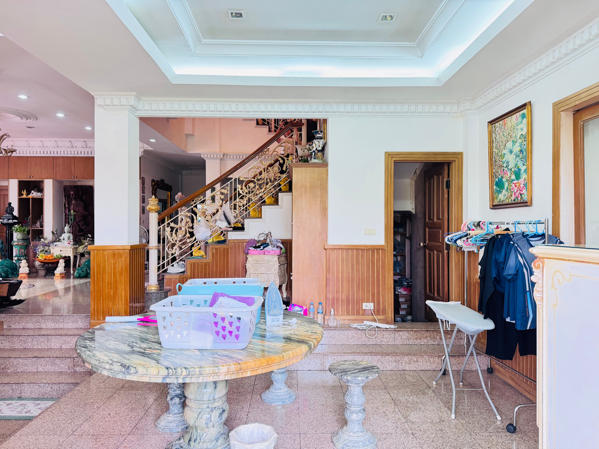 ขาย บ้านเดี่ยวหลังใหญ่ระดับพรีเมียม ในโครงการ GreenLake บางนา กม.13 ผสมผสานความหรูหรา ความเป็นส่วนตัวได้อย่างลงตัว รายละเอียด - ที่ดิน 412 ตรว. - พื้นที่ใช้สอย 1,200 ตรม. - 4 ห้องนอน และ 4 ห้องน้ำ - ห้องเสื้อผ้า 1 ห้อง - ห้องนั่งเล่น 1 ห้อง - ห้องโถงรับรอง - ห้องทำงาน 1 ห้อง - โซนออกกำลังกาย 1 ห้อง - ห้องผักผ่อน 1 ห้อง - ห้องอเนกประสงค์/ห้องนอนชั้นหนึ่ง 1 ห้อง - ห้องครัว 2 ห้อง และโซนกาแฟ1ห้อง - ห้องแม่บ้าน 4 ห้อง มีห้องน้ำในตัวทุกห้อง - โรงรถจอดรถได้ 4 คัน และสามารถจอดบริเวณอื่นได้อีก - บนโรงรถชั้นสอง เป็นเรือนไทยโปร่งมีห้องน้ำ - มีสวนขนาดใหญ่ ต้นไม้ถูกดูแลเป็นอย่างดี - ค่าส่วนกลางเดือนละ 1,700 บาท - ขายพร้อมเฟอร์นิเจอร์หรู และเครื่องใช้ไฟฟ้า - แอร์ 5 เครื่องขนาดใหญ่ - อายุบ้านประมาณ 10 ปี - บริเวณพื้นชั้น 1 เป็นหินอ่อน บันไดเป็นแกรนิต ชั้น 2 พื้นเป็นไม้สักทอง - จุดเด่น - บ้านตั้งอยู่ในโครงการที่เงียบสงบ เหมาะกับการอยู่อาศัย - งานก่อสร้างระดับคุณภาพ ฟังก์ชั้นภายในบ้านถูกออกแบบมาอย่างลงตัว รวมถึงลดเสียงรบกวนจากภายนอก - ขายพร้อมเครื่องใช้ไฟฟ้า เฟอร์นิเจอร์หรู และงานประติมากรรมนำเข้าจากต่างประเทศ สถานที่ใกล้เคียง - เมกาบางนา - สนามกอล์ฟ Thana City - Central Village - VESSO International School - Market Village สุวรรณภูมิ ราคา 65,000,000 (ฟรีโอน) สนใจนัดชมบ้าน ติดต่อ: คุณพอล Tel/Line: Contact number Line OA: @paulestate WhatsApp : Contact number