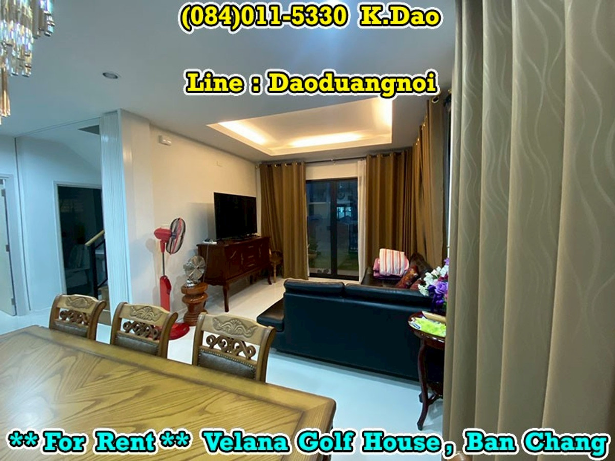 *** House with Extension for Rent *** Velana Golf House, Ban Chang Eastern Star Golf Course 2-Storey House Land area 55.1 Sqr.wah House area 200 Sqr.m. 3 Bedrooms 3 Bathrooms 2 Balconies 1 Family Area 1 Living Room 1 Office Area 2 Kitchens 1 Dining Area 1 Storage Room 2 Parking Fully Furnished +++ Rental fee 25,000 Baht/month +++ *** High Security *** CCTV around the village. Velana Golf House's residents have keycards to enter & exit the gate of Eastern Star, and enter & exit the gate of Velana Golf House with the keycards again. +++ Double Security +++ Facilities - Swimming pool with saltwater system - Gym - Park - Co-working space - Barbeque yard Location : https://goo.gl/maps/hpxu5sLPe5mJYBmd9 Velana Golf House is close to Eastern Star's gate, which is only Velana's residents who have the keycards can pass. This gate is direct to Motorway and Phla Beach. Contact for renting with Dao. Tel. : (084)011-5330 Line ID : Daoduangnoi WhatsApp : Contact number https://www.facebook.com/ThePastelProperty