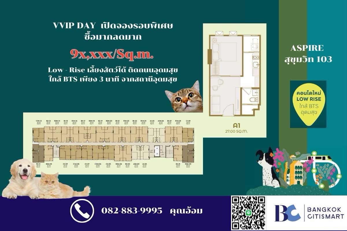 รอบ VVIP ที่นักลงทุนรอคอย — คอนโดสุขุมวิท เลี้ยงสัตว์ได้ เริ่ม 9x,xxx/ตร.ม. Call 0828839995 อ้อม
