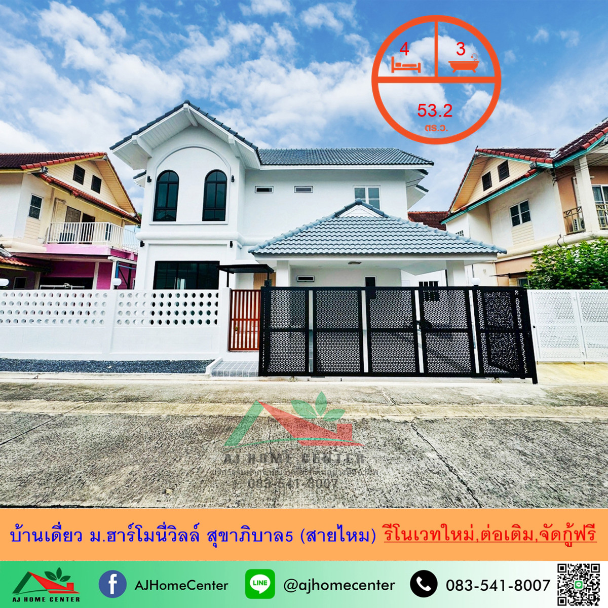 Single house for sale 53.2 sq m. Harmony Ville Village, Sukhapiban 5 (Saimai), newly renovated, addition with garage . Single house 53.2 square wah, usable area 250 square meters 4 bedrooms, 3 bathrooms, 1 kitchen, 1 living room, 1 storage room, 2 parking spaces ***Renovated the whole house***- New paint throughout the house - Changed all new sanitary ware - New laminate flooring throughout the house - Added a back kitchen + bar counter + kitchen counter with gas stove and range hood - Added a garage + laid tiles - Free sofa, 6-seat dining table, water pump + water tank - Front of the house faces south - Common fee / month 900 baht . - The road in front of the house is wide, easy to drive in, 2 lanes - The project is next to the main road, Sukhapiban 5. Very convenient travel - Traveling in and out of Chatuchot, Sai Mai or Watcharaphon is also convenient - Near the entrance and exit point of Sukhaphiban 5 Expressway. and Chatuchot - near the BTS Green Line, K.P.O. Intersection Station (8.6 km.) - Near the market, shops, hospital, department store and government agencies - Price negotiable - Free loan arrangement service by professionals - Direct installment service available from leading companies . Nearby places • Sarasas Witaed Saimai School 600 meters • Wongsakorn Market 1.3 km.• Saimai Avenue 1.5 km. • CGH Hospital Saimai 1.7 km. • Big C Saimai 2.9 km. • Big C Sukhapiban 5 – 3.6 km. • AC Market Saimai 6.3 km. • Savewanko Market, C.P.O. Intersection 8.6 km • Bhumibol Hospital 9.5 km.. If interested, contact Khun Bu, phone number Contact number / Contact number / Contact number
