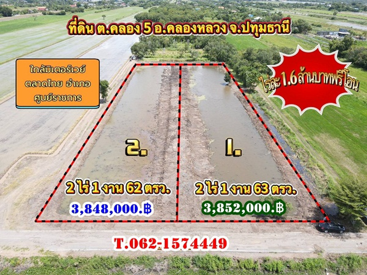 #Land in a good location, this plot is connected to Khlong 4_Khlong 5, can be reached in 2 ways, Khlong 5 West, Khlong Luang District, Pathum Thani Province T.062-1574449