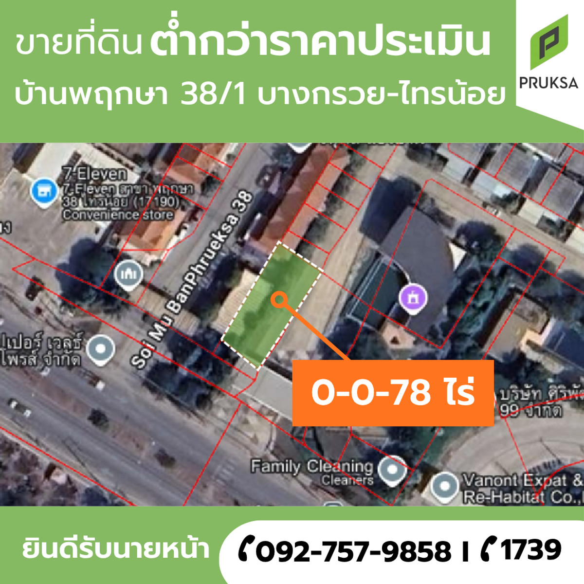 Promotion ที่ดินแปลงสวย ราคาพิเศษ‼️ ติดถนนบางกรวย-ไทรน้อย หน้าหมู่บ้านพฤกษา 38 (รหัสทรัพย์ B04) ทำเลดี ชุมชนหนาแน่น เหมาะสำหรับค้าขาย / เป็นสำนักงาน / ที่พักอาศัย 🍀 เนื้อที 78 ตร.วา ราคาเพียง 1.3 ล้านบาท 🍀 ราคานี้เฉพาะทำสัญญา / โอนกรรมสิทธิ์ ภายใน 30 ธันวาคม 2568 เท่านั้น ‼️ 📞สนใจโทร. Contact number