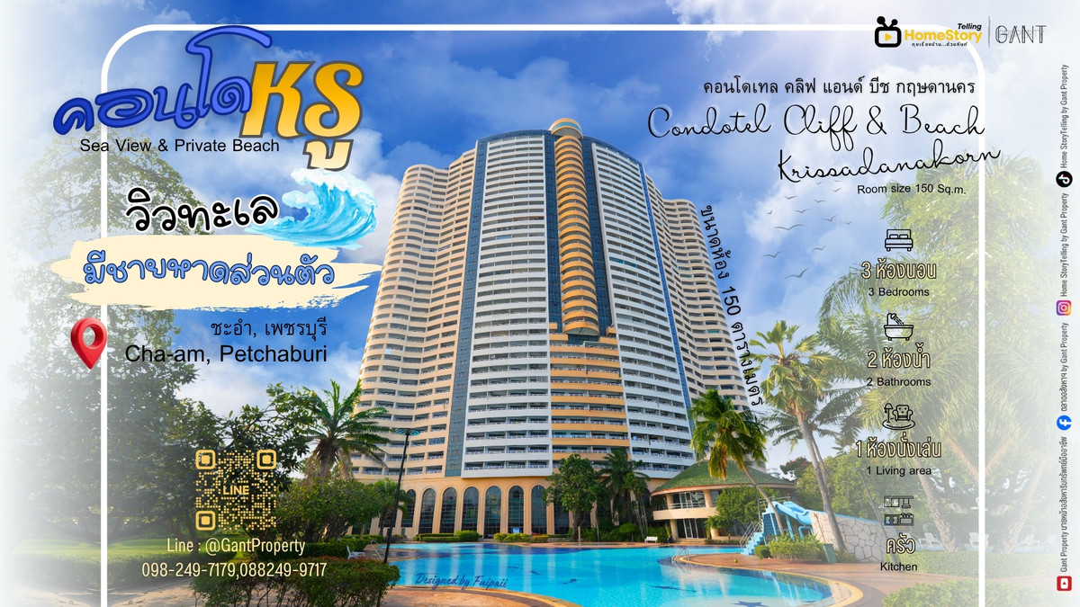 🌊 For Sale: Sea View Condo – 3 Bedrooms, Private Beach Access, Cha-Am, Phetchaburi Spacious 150.08 sq.m. condominium with a panoramic sea view, featuring 3 bedrooms | 2 bathrooms | 1 kitchen | 32nd floor Ceiling height 3 meters – airy, open, and relaxing atmosphere. Fully furnished and ready to move in. Located in the Cliff & Beach Condominium by Krisda Nakhon, Private beachfront residence in Cha-Am, Phetchaburi. 💰 Special Price: Only 7.9 Million Baht 📞 Contact: Khun Gant |  Contact number |  Contact number Line: @GantProperty