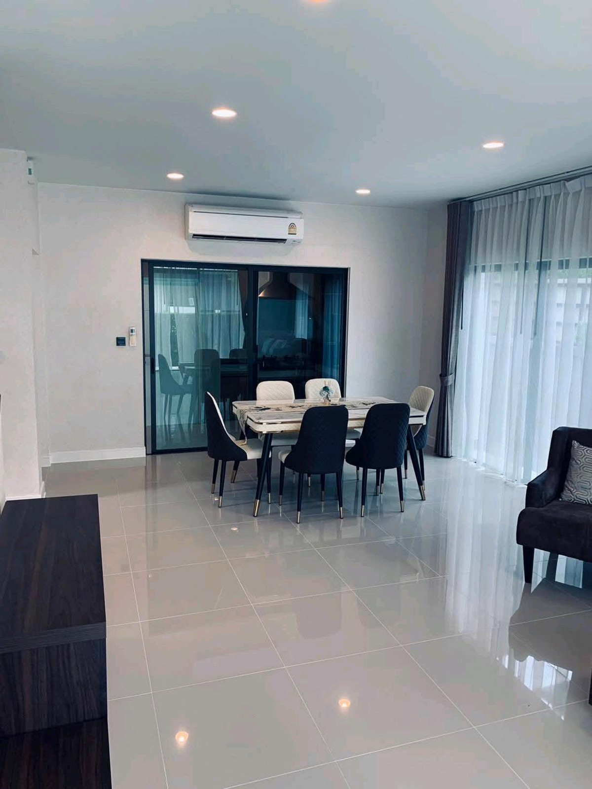 Available NOW, vacant house, ready to move in!!! Single house, Setthasiri project Krungthep Kreetha 1 The house has just been renovated and is ready to move in For rent 85,000 baht/month Single house, 4 bedrooms, 3 bathrooms Usable area 193 sq m. Area approximately 57 square wah Parking for 2 cars If interested, contact call/Line Contact number