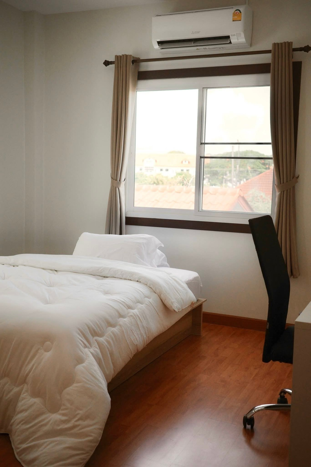 🏡 For Rent — Minimalist Japanese-Style House with Doi Suthep View, Chiang Mai City Area ⛰️ ✨ Newly renovated 2-storey private house in a peaceful local neighborhood near Wat Tha Look – Fah Ham. Surrounded by a 3-meter-high privacy wall, ideal for those seeking quiet, comfort, and modern simplicity. 📐 Usable area: 150 sq.m. | Land: 60 sq.wa (240 sq.m.) 🏠 2 floors | 3 bedrooms | 3 bathrooms | Parking for 3 cars 🌿 Beautiful Japanese-style garden with automatic watering system 💰 Rent: 32,000 THB/month 📅 Minimum lease: 1 year 💵 Deposit: 2 months + Advance: 1 month ✅ Included services: • Monthly cleaning (1 time/month) • Garden maintenance every 2 months • Termite treatment every 3 months • Free high-speed internet 🛋️ Fully furnished with premium appliances: 55" Smart TV 4 Air conditioners (all bedrooms + living room) 3 Beds, wardrobes, dressing table Dining set, sofa, kitchen table Sideboards (3 units) Electric stove + hood Curtains throughout 2 Water heaters Refrigerator, microwave, washing machine Air purifier, mist fan, coffee machine Auto watering system & solar lighting Electric gate 🚫 No pets 🚭 No smoking inside 📍 Convenient location & multiple access routes: 700 m → Inner Ring Road (Ruamchok – Government Center) 2 km → Chotana Rd. (across Ban Tho Bridge) 3 km → Fa Ham / Super Highway 2.7 km → Pa Tan 🏞️ Nearby places: • 7-Eleven – 300 m • Ban Tho Market / Lotus Express – 650 m • Lanna Hospital – 2.5 km • Central Festival – 4 km • Nimmanhaemin – 4.5 km • Payap University – 4 km • NIS International School – 1.4 km • ABS International School – 10 km 📞 Contact Information: 👩💼 Yam 📱 Tel: Contact number 📲 Line: @syammy8939 🔗 More listings: facebook.com/CondoChaingmai.th 💬 A newly renovated home in a peaceful area with Doi Suthep view, modern minimalist style, and full services — truly a rare find! 🌿✨