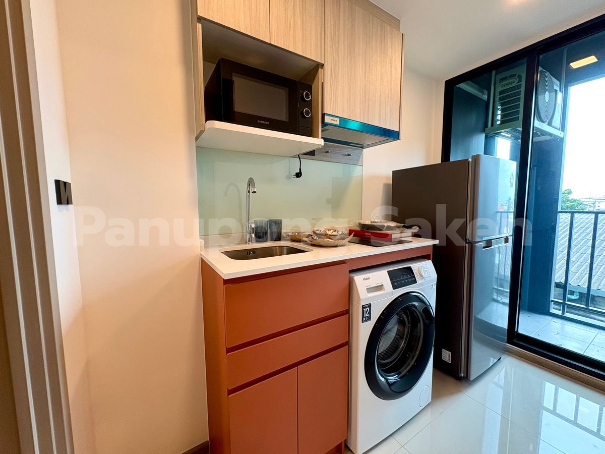 📍 New Condo near MRT Lat Pla Khao, just 1 minute‼️ ✨ Fully furnished, ready to move in! Price only 9,500.- / month 🛏️ 1 bedroom | 🚿 1 bathroom | 📐 24.25 sq m. 📍 MRT Lat Pla Khao, just 1 minute walk 📍 Near Central Ramindra – Expressway – Krirk University – Sripatum University ———————————————✅ Brand new room, ready to move in ✅ Fully furnished + complete electrical appliances ✅ Smart TV 42 inches / air conditioner / refrigerator / microwave / washing machine ✅ Built-in kitchen + electric stove + exhaust hood + Digital Door Lock ✅ Strong structure Passed the building inspection ✅ Take care through a company that directly takes care of the building⸻———————————— 🌟 Facilities, full 7+1 floors: 🏊 Swimming pool + sky garden 💪 Fitness + Rock Climbing🎬 Movie Room + Pool Table 🧘♀️ Yoga Room + Outdoor Boxing 🍽️ Co-kitchen + BBQ Outdoor 🧑💻 Co-working Space + Meeting Room🔧 Workshop Space ⸻———————————— 💼 Nearby places: 🚆 MRT Lat Pla Khao 1 minute 🛣️ Chalong Rat Expressway / Vibhavadi 5 minutes 🛍️ Central Ramintra 5 minutes 🏫 Phranakhon Rajabhat University / Krirk University / Sripatum University 5–6 minutes ⸻———————————💰 Conditions: 2 months warranty + 1 month in advance 📹 Make an appointment to see the actual room or Video Call 🧑💼 For rent by the company that directly takes care of the building - not through a broker⸻———————————- 📞 If interested, contact 📱 Contact number 💬 LINE: pnp02042548