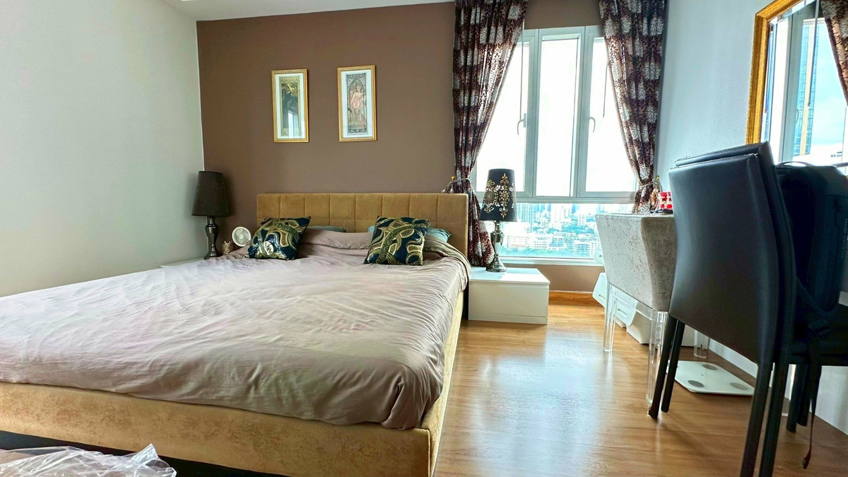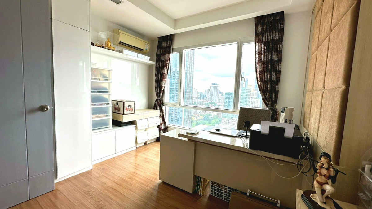 Thru Thonglor Condo, special corner room facing south/east. The sample room of the project opens up to views of the water and city all around. Fully furnished and ready to move in.