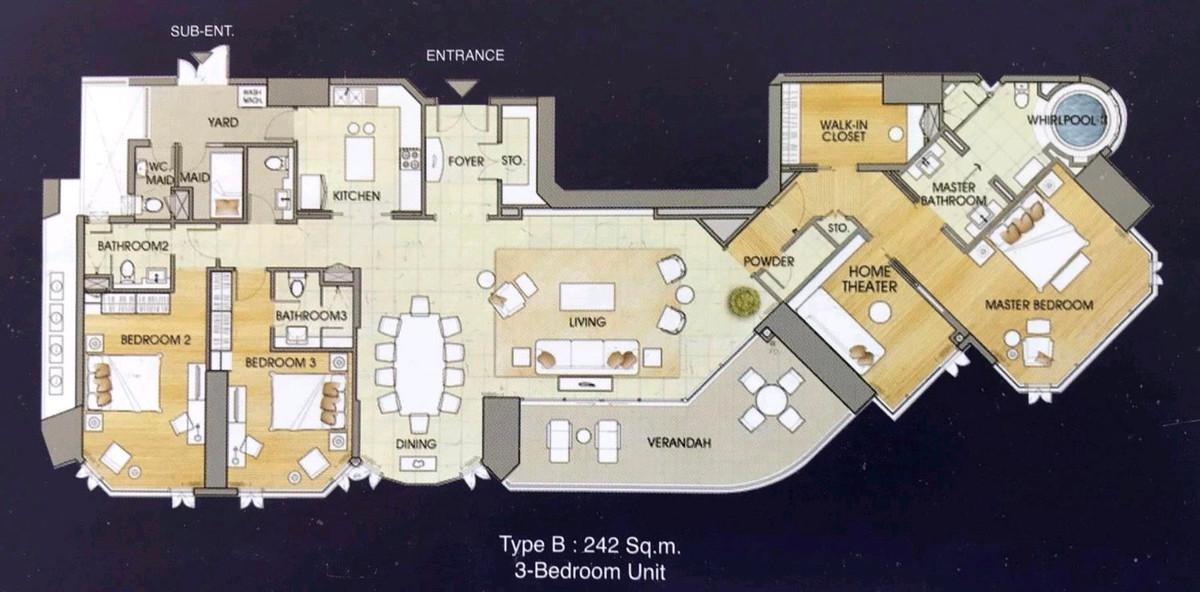 🌟🌟WaterMark Chaophraya River Condominium for SALE/ Rent🌟🌟 Panoramic River View, Suite Unit 3 Bedrooms, 33th Floor, Details : Area: 242.12 Sq.M. Fully Fitted 3 Bedrooms 4 bathrooms (Type B2) 33th Floor