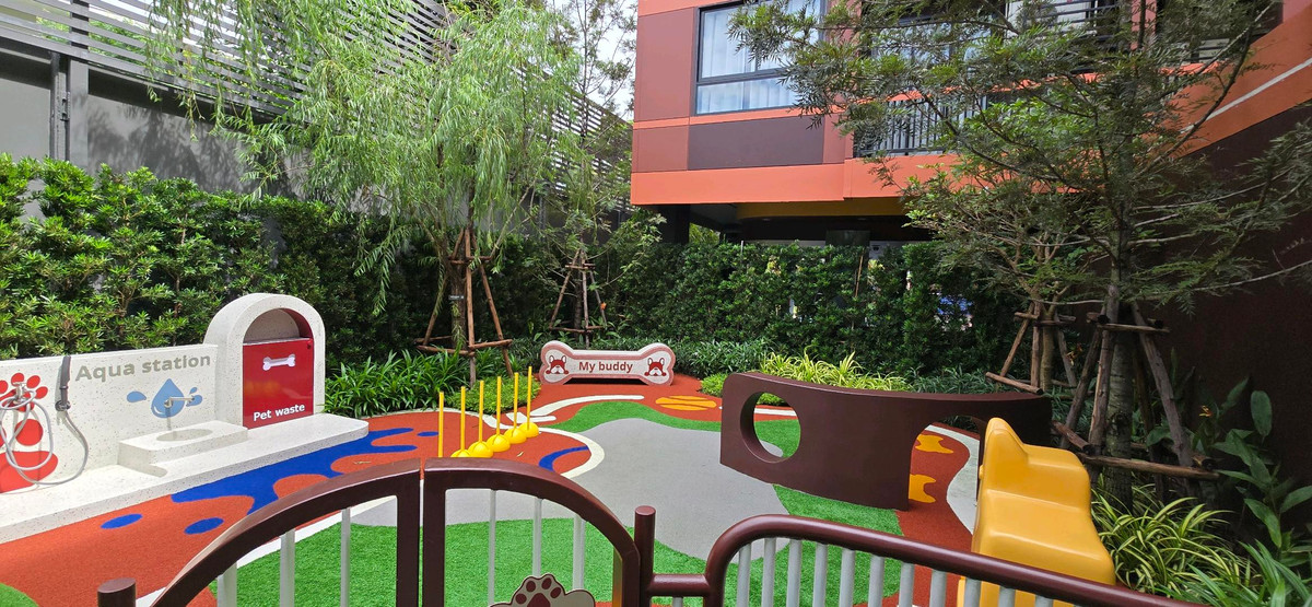 เดอะ มูฟ สุขุมวิท 107 โครงการ Pet Allowed เพิ่มพื้นที่ของสวนให้กว้างขึ้นเป็นพิเศษ แบ่งโซนสำหรับสัตว์เลี้ยงโดยเฉพาะ เพิ่มพื้นที่นี้ให้ความเป็นส่วนตัว และปลอดภัยโอบล้อมด้วยต้นไม้ใหญ่ ให้มีความร่มรื่นตลอ