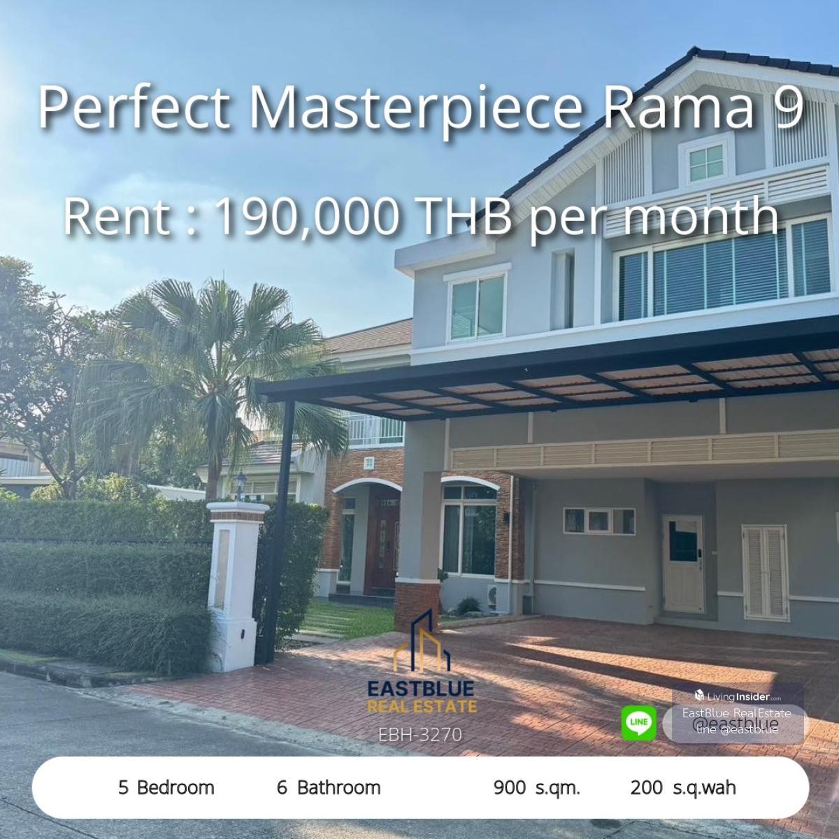 Project : Perfect Masterpiece Rama 9 ID : EBH-3270 5 Bed 6 Baht House Area :900 sqm Land Area :200 sq.wah Rental Price : 230,000 THB per month Selling Price : THB . Contact, Appointment for viewing. call: Contact number WhatsApp: Contact number - Eastblue, we are a team of professional real estate agents. that has been trusted with total sales worth several billion baht With a team of consultants who are experts in buying, selling and investing in real estate. . See more than 50,000 other properties, explore over 50,000 listings on our website: https://www.eastblueth.com ❗️❗️not accept co-agent❗️❗️ . Rent or sell luxury house Perfect Masterpiece Rama 9 • 5 bedrooms, 6 bathrooms, parking available. • Usable area 900 sq m., land size 200 sq m. Project highlights and facilities • 24 hour security system • Clubhouse, fitness, swimming pool • Calm environment. Suitable for large families. Nearby places • The Nine Rama 9 1.2 km. • Central Rama 9 3.5 km. • Rama 9 Hospital 4.0 km. • Ramkhamhaeng University Demonstration School 5 km. Rental price 230,000 baht/month Selling price, contact to inquire. #PerfectMasterpieceRama9 #Luxury house Rama 9 #Luxury house for rent