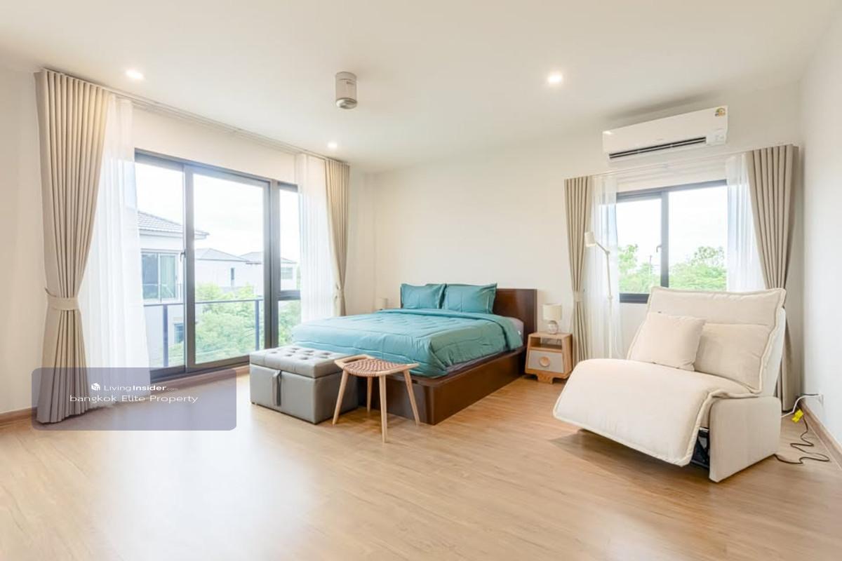 New House Ready to Move Baan Klang Muang The Edition Bangna Fully furnished, Lake View Next to MEKA Bangna , Muang Kaew Golf ✅ Details :: - Living area : 300 sq.m - Bedroom : 4 - Bathroom : 4 - Living room : 2 - Kitchen : 1 - Maids room : 1 - Parking : 4 - Marble bathrooms with tub & rain showers - Fully air-conditioned, custom furniture, blackout curtains Facilities :: - Swimming pool, fitness - Club House - Park - 24 hrs security system ------------------------------ RENT : 110,000 THB ------------------------------ For further inquiries, please contact Mr. Big Call : Contact number Line : big Contact number Bangkok Elite Property Happy to provide services for buying, selling, renting houses, real estate Advising on bank loans.